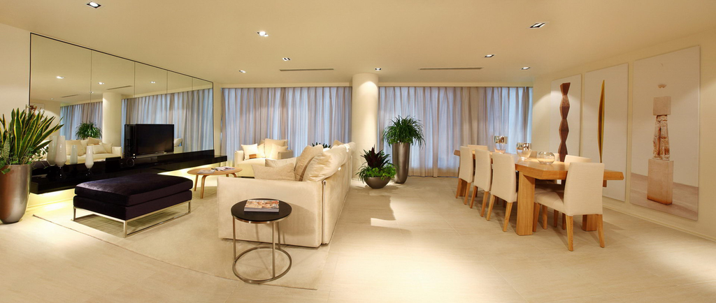 Апартаменты представлены в широком диапазоне площадей — от около 70 м² до примерно 344 м², что позволяет подобрать вариант как для одного владельца, так и для семьи с детьми. Планировки отличаются продуманным зонированием и функциональностью, а крупные окна создают ощущение пространства и открытости.