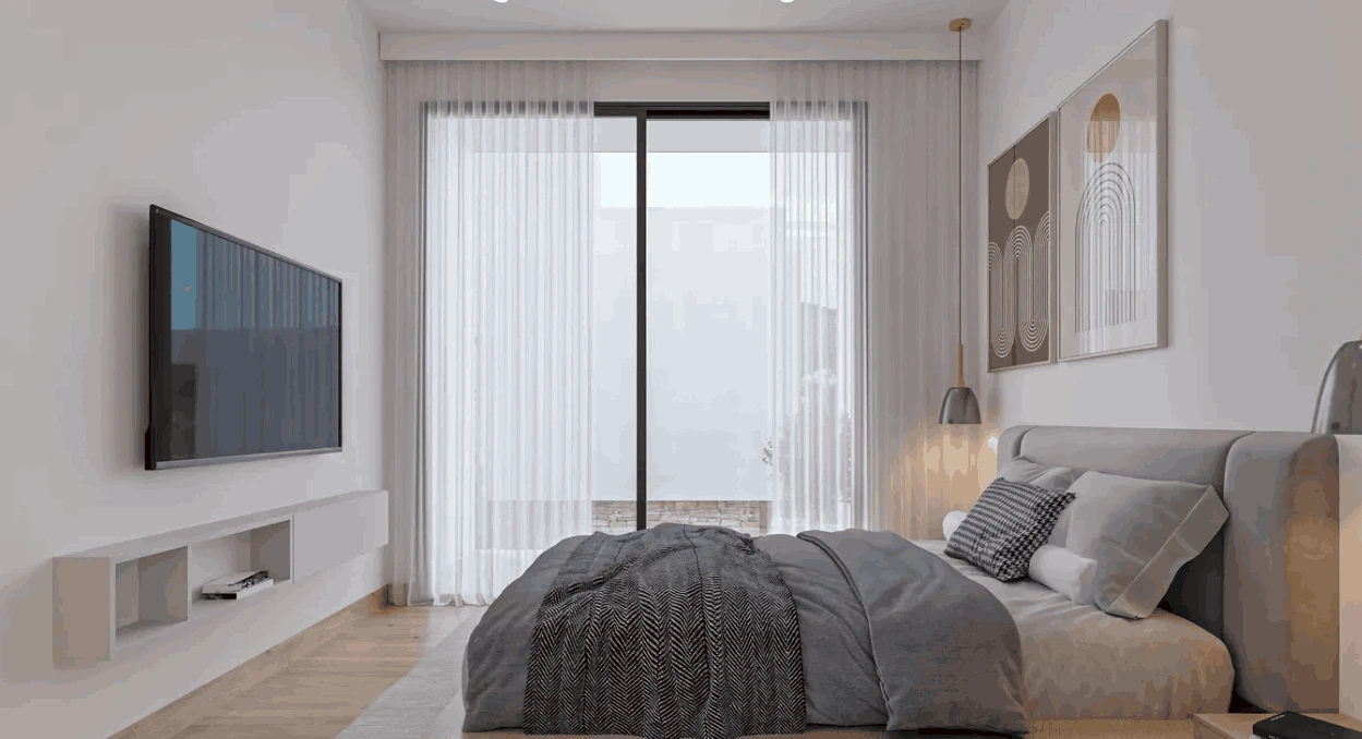 现代极简风格,配备落地窗、明亮立面与宽敞露台,营造通透明亮的空间感。