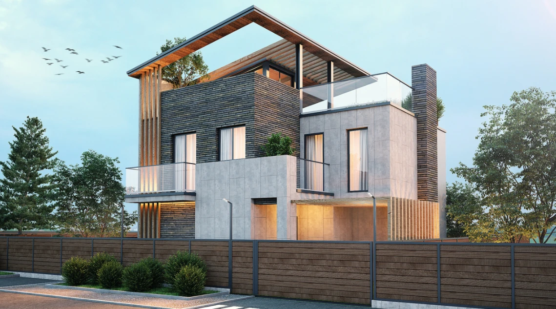 联排别墅:带独立庭院和大露台的半独立式住宅,居住面积从 105 平方米起。项目计划建造 12 栋这样的房屋。