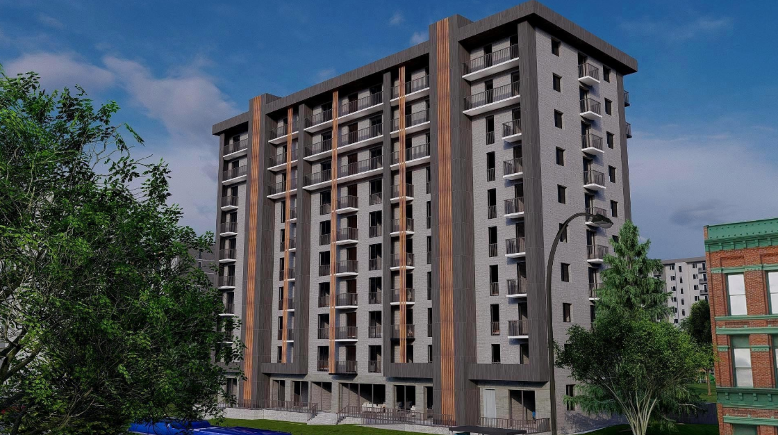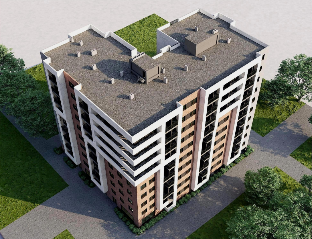 这座 10 层高的建筑包括 79 个住宅单元和商业用房。公寓的最小建筑面积从 34.4 平方米起。公寓的布局设计可满足不同的需求:新家庭、大户型和小户型、出租或学生。新建筑配备了所有必要的安全系统,包括现代化的电梯和消防系统。