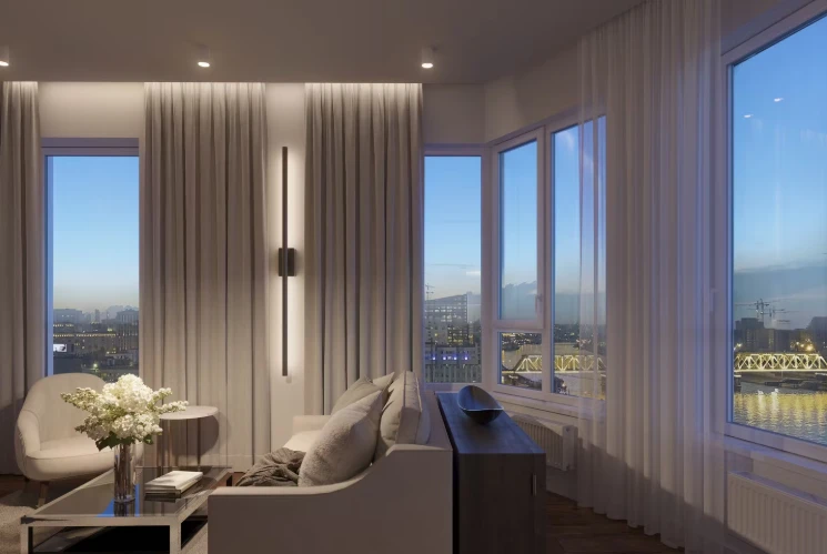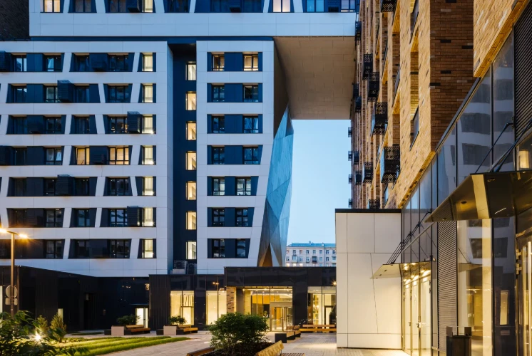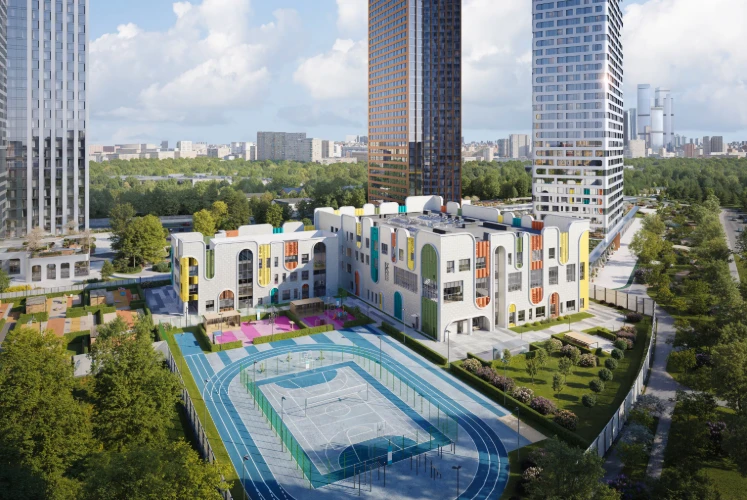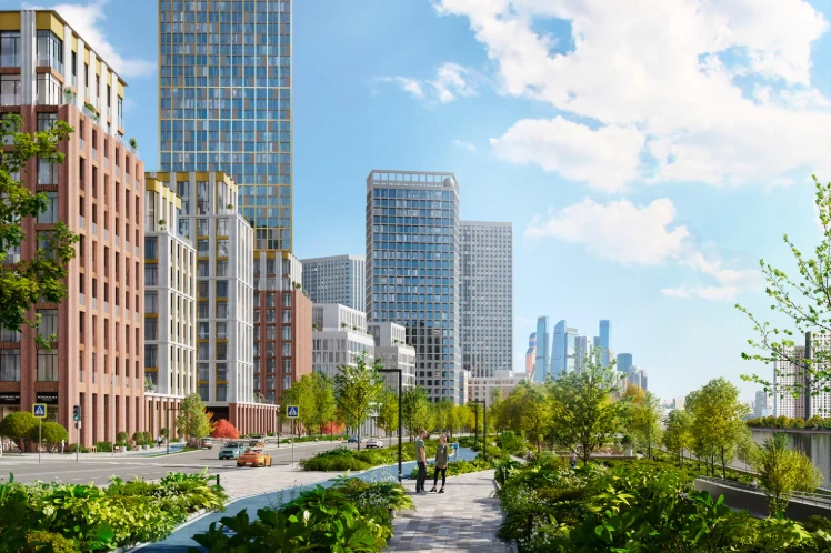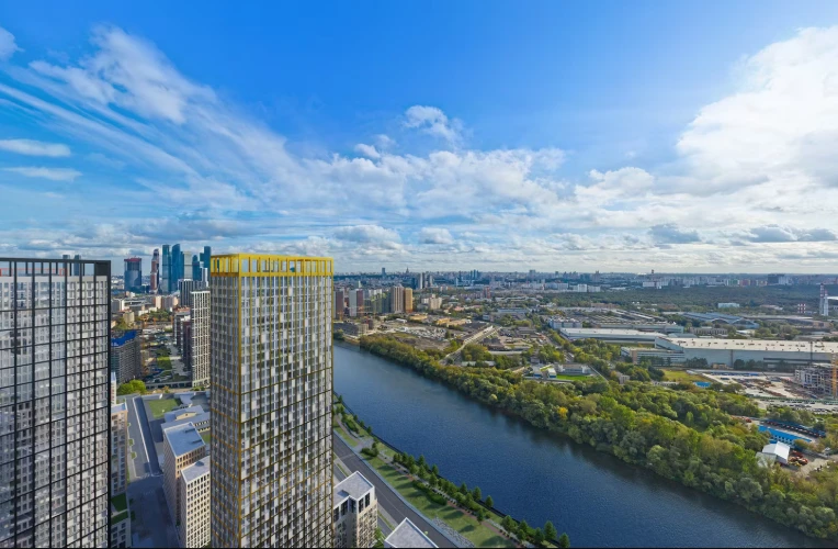 小区体现现代城市居住理念,拥有全景窗、高达3.7米的层高及精心设计的公共空间。建筑风格立面突出,与城市景观和谐融合,并可眺望莫斯科国际商业中心(Moscow-City)。