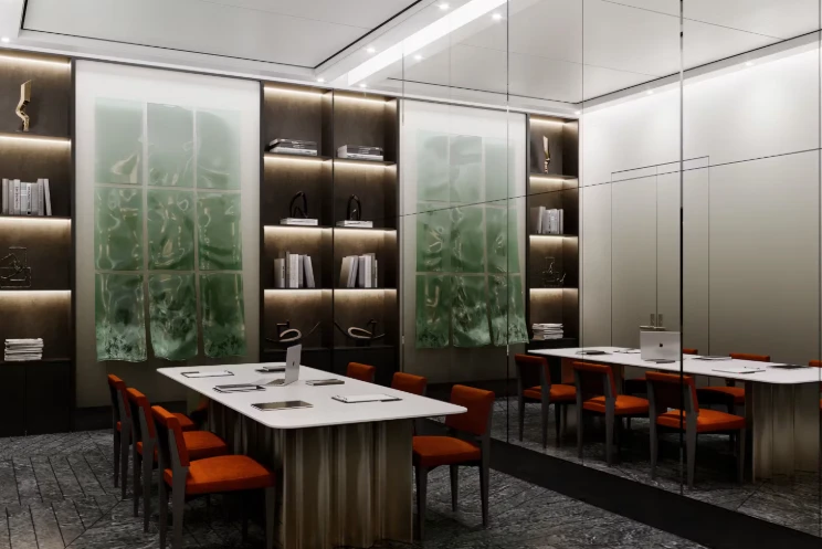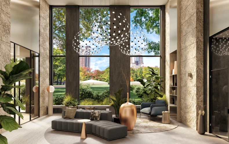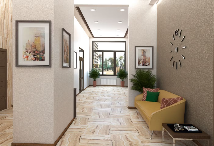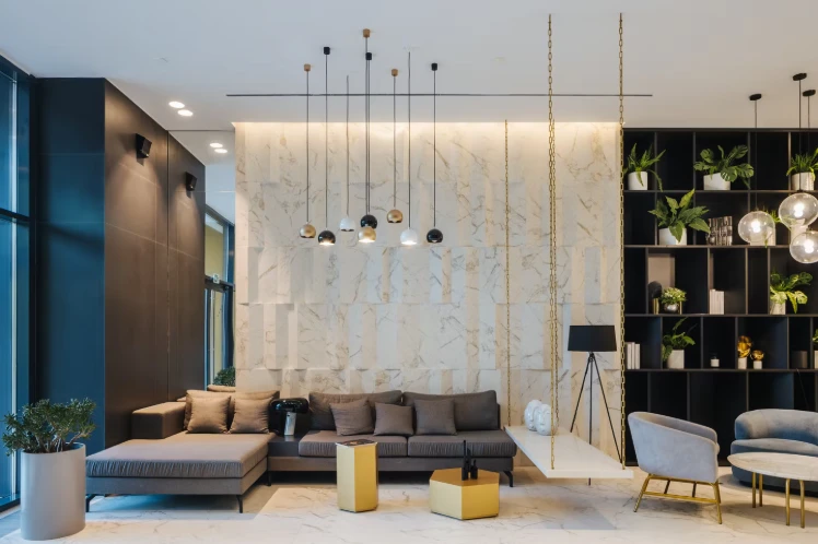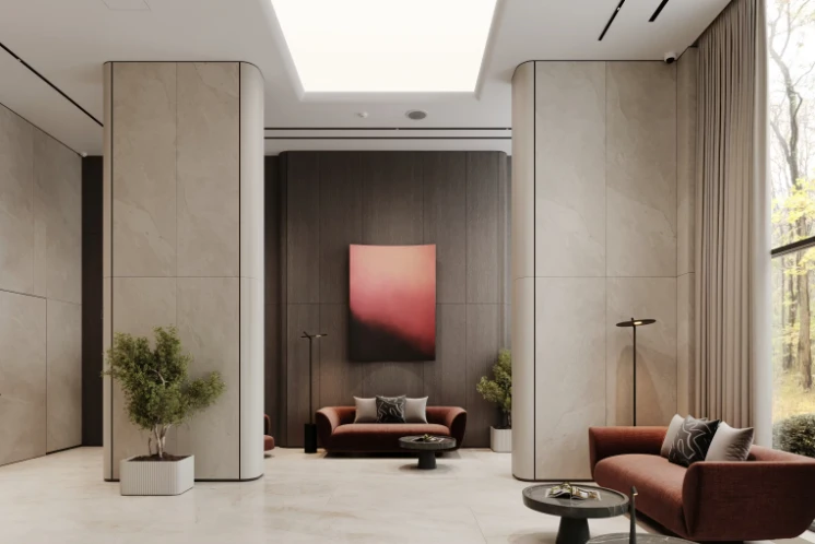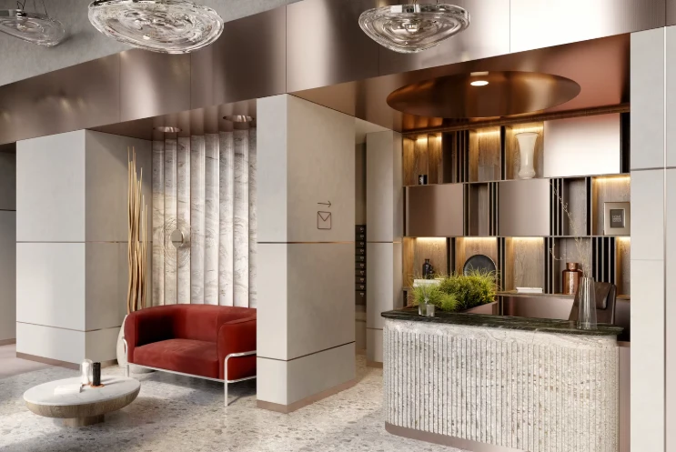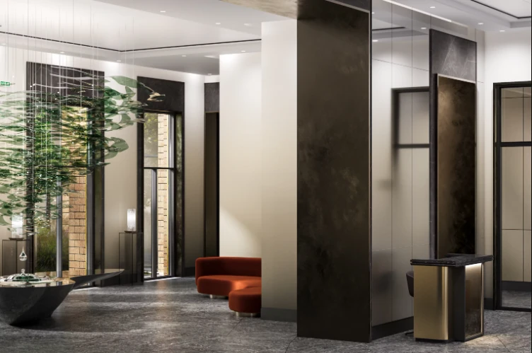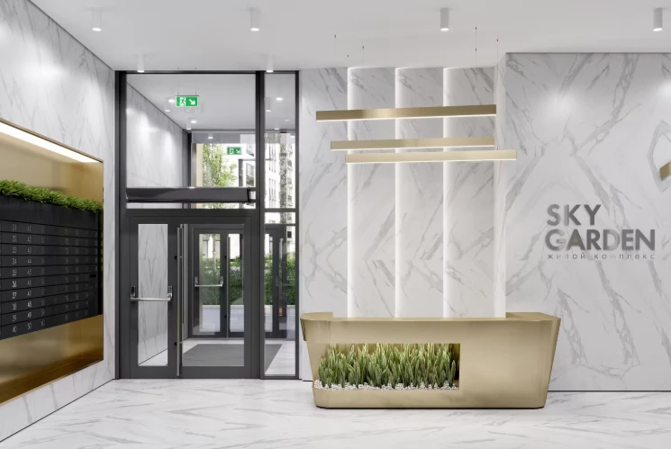 入口空间经过精心设计:宽敞的大堂拥有较高的层高,并按照独立设计理念打造。公共空间营造出高端俱乐部住宅的氛围,为住户和访客提供舒适环境。