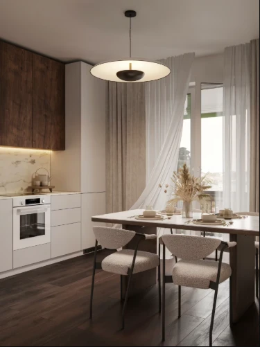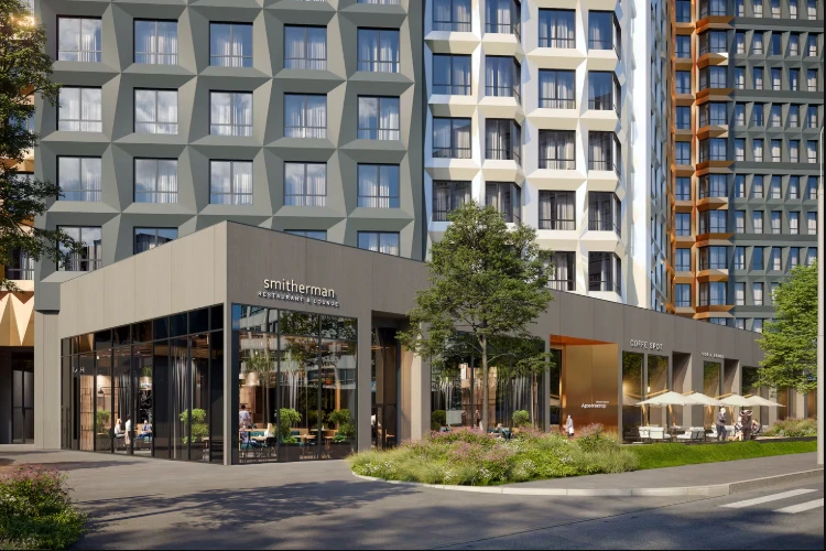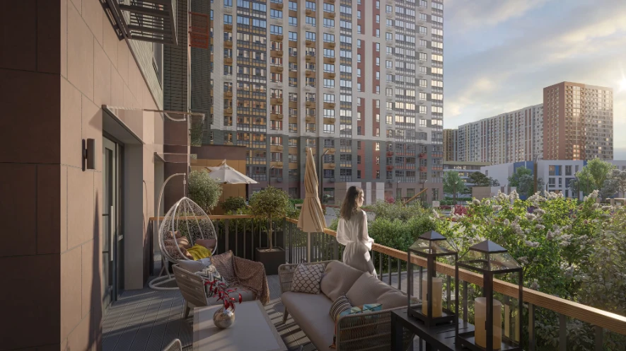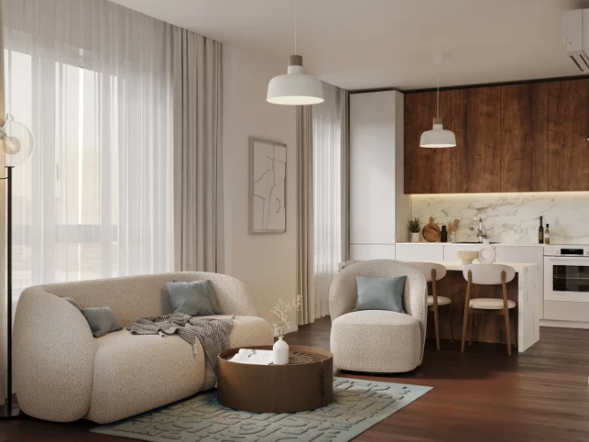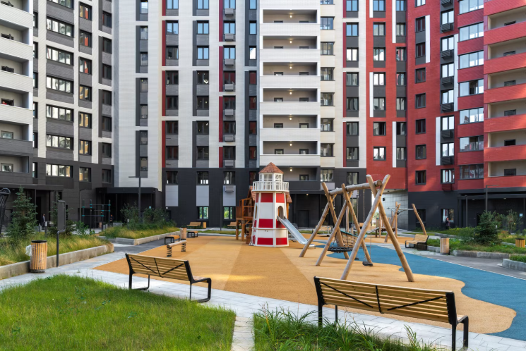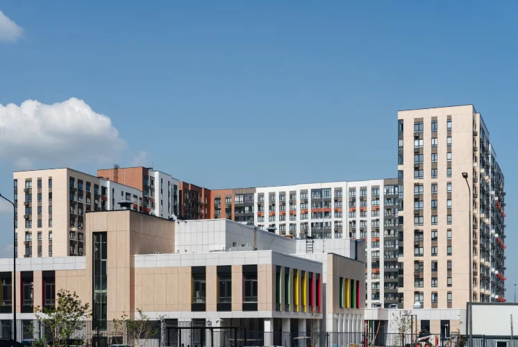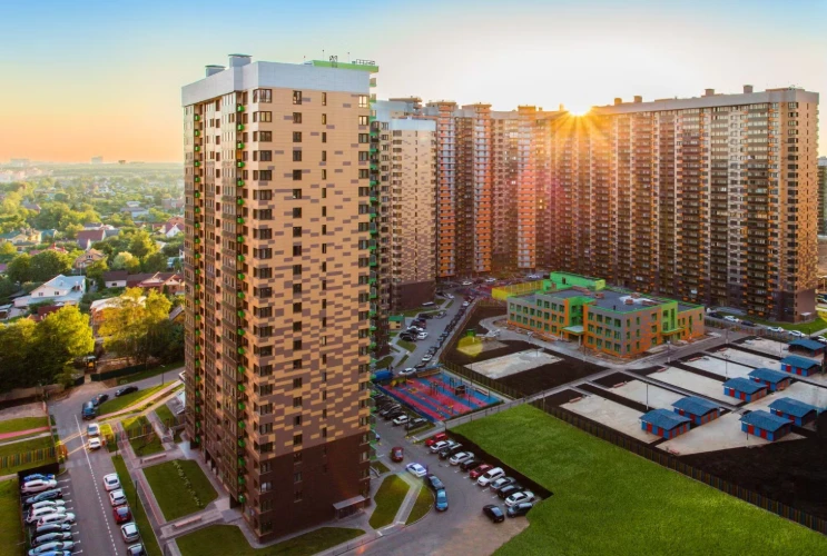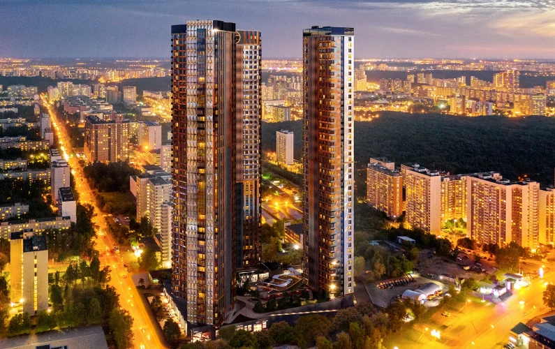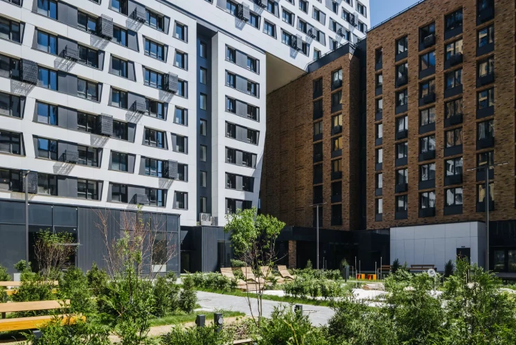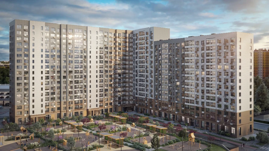 小区由多栋不同高度的住宅楼组成,采用框架-砖结构施工技术,确保建筑耐久性和舒适居住条件。公寓面积从紧凑型单间到宽敞多居室不等,可选择毛坯交付、White Box交付或精装修交付。
