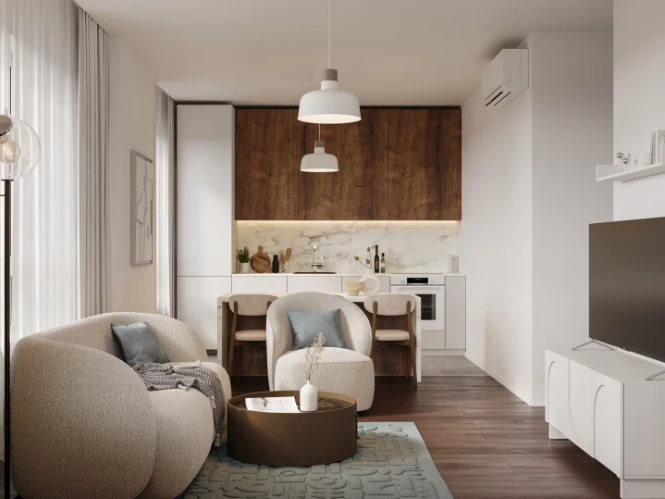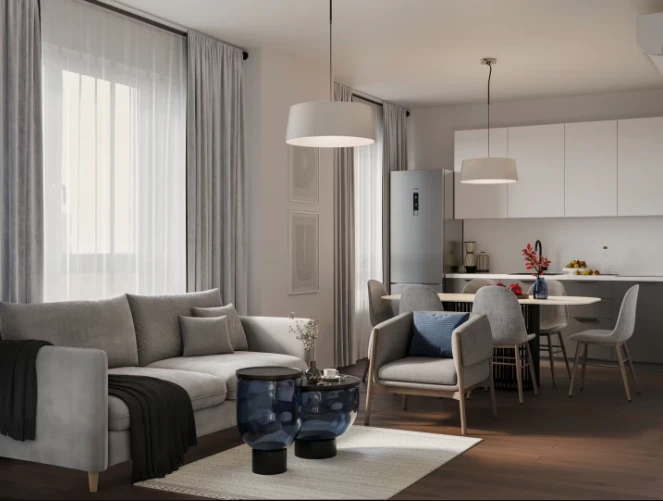 项目提供多种户型选择,从紧凑型单间公寓到宽敞的家庭型住宅。公寓面积约为19.6至86.9平方米。购房者可选择不同的交付方式:毛坯交付、White Box基础装修或精装修交付。