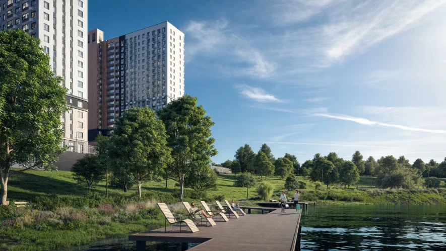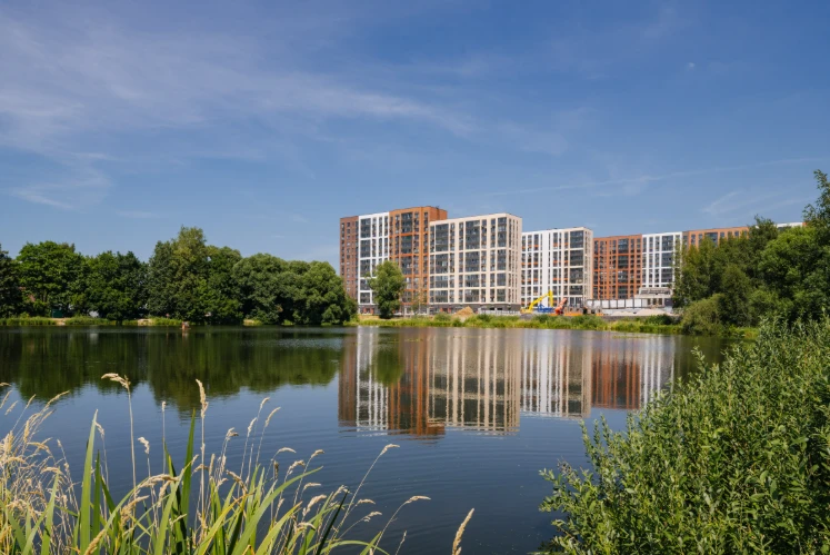 小区环绕水域——大莫尔扎宁诺池塘、东布尔采夫池塘和西布尔采夫池塘——营造舒适的自然环境,适合散步和休闲。
