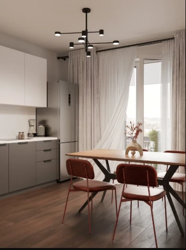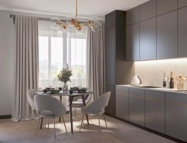 户型设计注重功能性。公寓配备宽敞的厨房客厅空间、合理的居住区划分以及充足的储物空间。许多住宅还配有阳台或封闭式阳台,进一步扩大可使用空间。