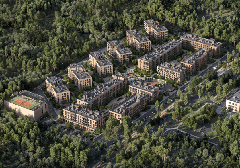社区占地5万平方米,地处泽列诺戈尔斯克深处,这里曾是芬兰小镇“特里奥基”(Terijoki),至今仍保留着原始宁静:百年松林、洁净空气、毗邻芬兰湾,让人远离喧嚣,却又距区域商业与文化中心仅数分钟车程。