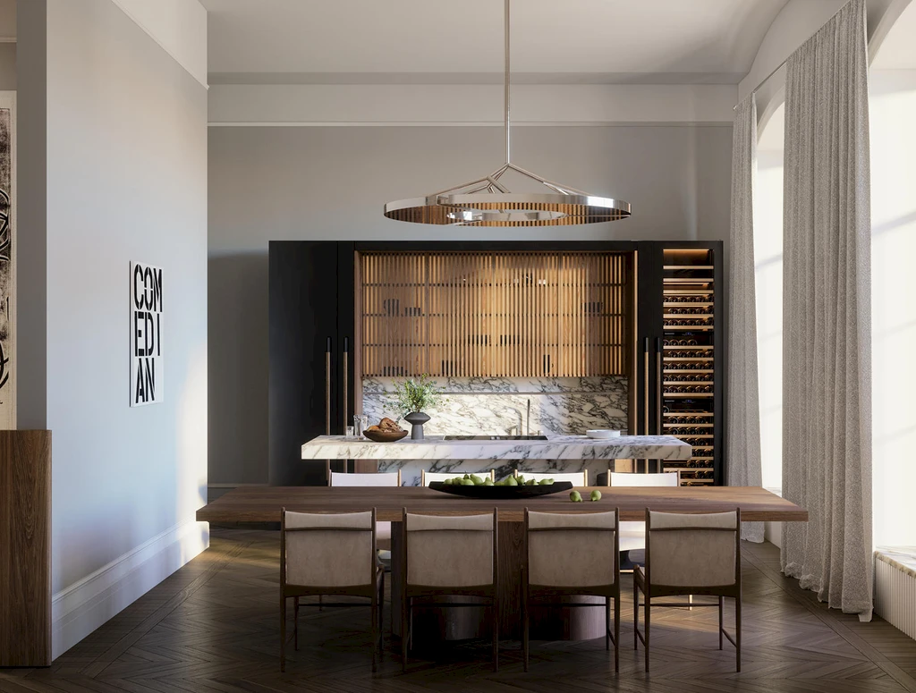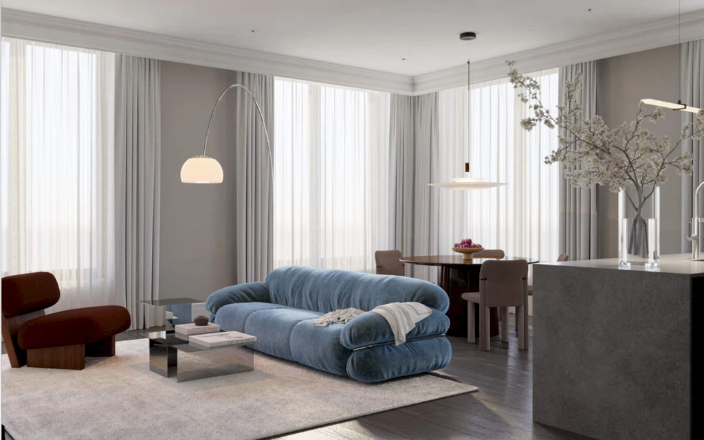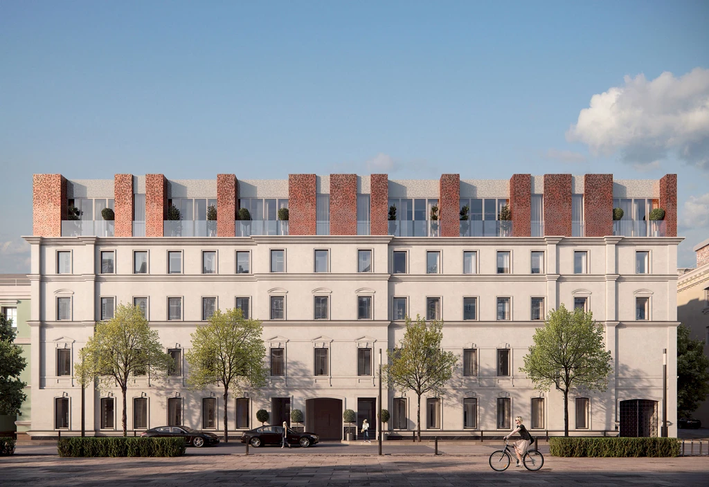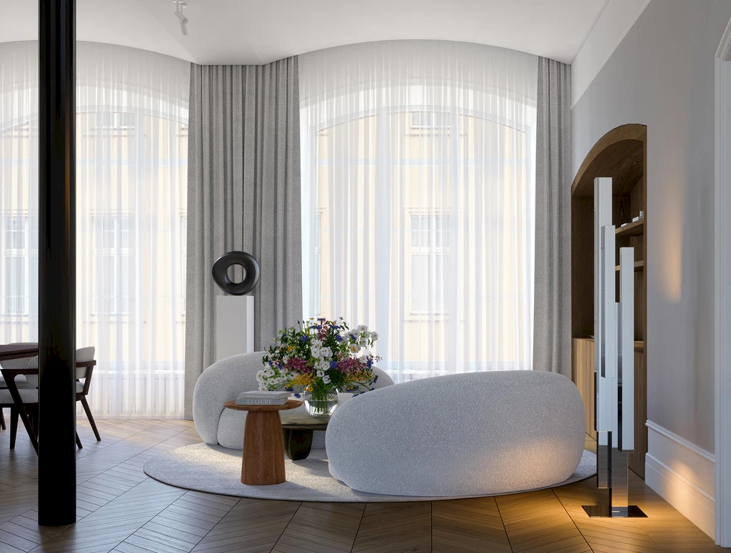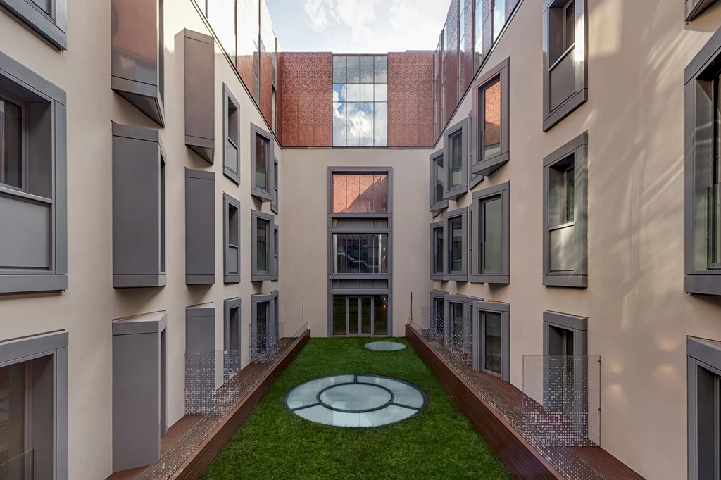 项目在设计上充分考虑了区域的历史背景。建筑概念由国际设计事务所 Architects of Invention 提出,将19世纪经典立面与现代建筑元素融合。新增的第五层和全景飘窗实现了传统与现代技术的和谐统一,内部庭院为居民提供私密和宁静的空间。