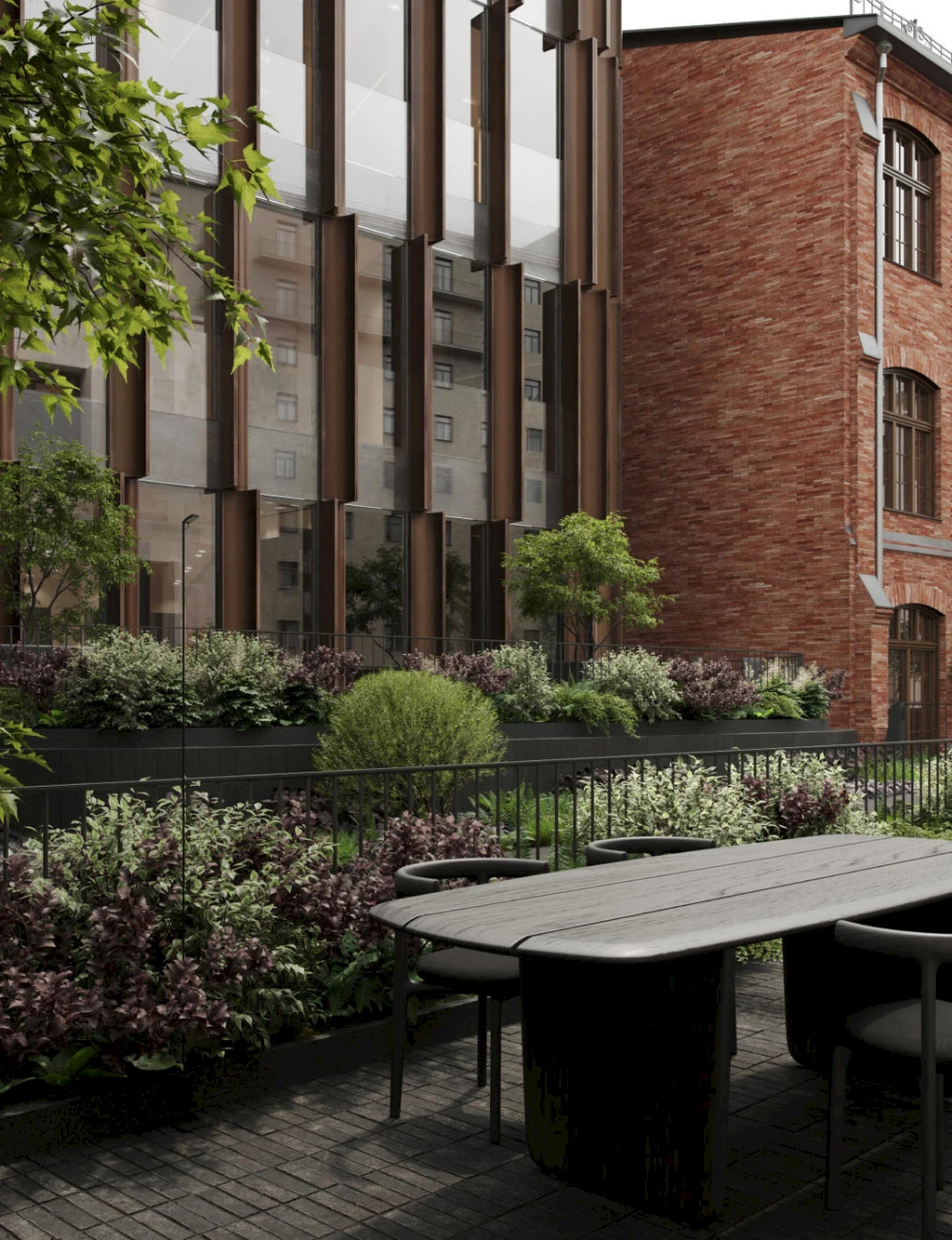 居民可享受市中心生活的所有便利:附近有餐厅、商店、文化场所及休闲区域。会所式住宅形式保障了高度的私密性和独特性。
