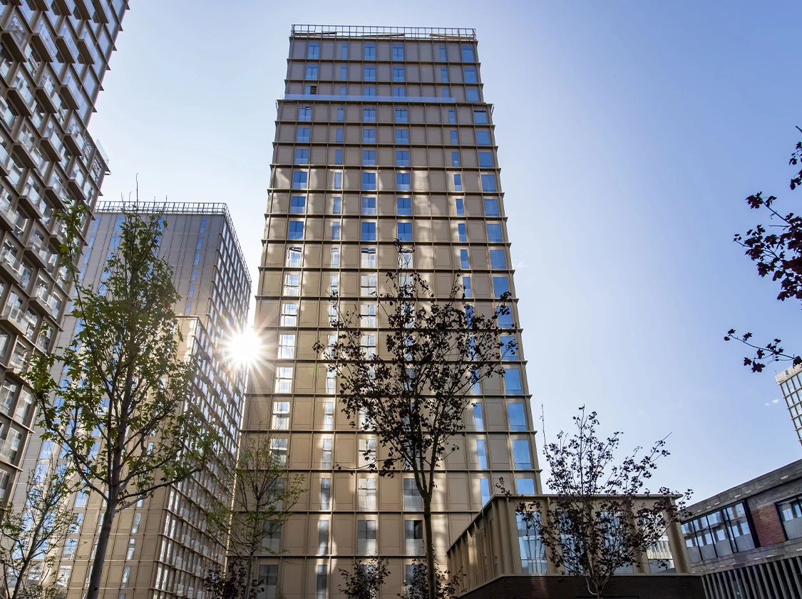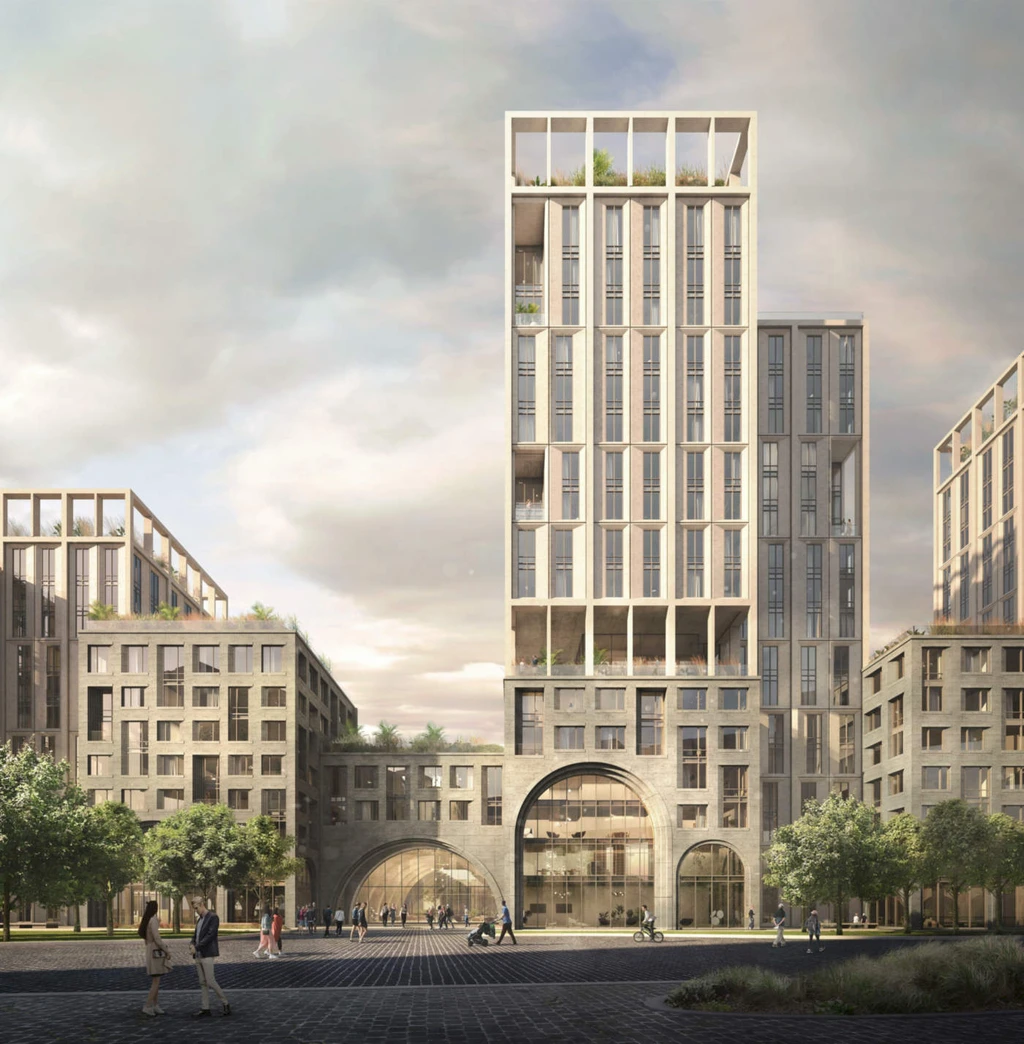 住宅区由 10 栋不同高度的建筑(7至18层)组成,统一建筑风格。建筑外立面设计优雅,融合经典与现代元素:拱形设计、底层采用陶土-石墨色饰面,上层为金砂色调。建筑方案由国际建筑事务所 ODA Architecture 设计,确保高标准的设计和现代化外观。