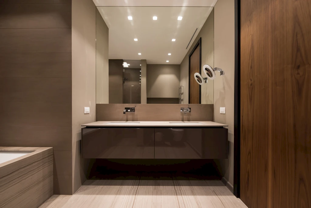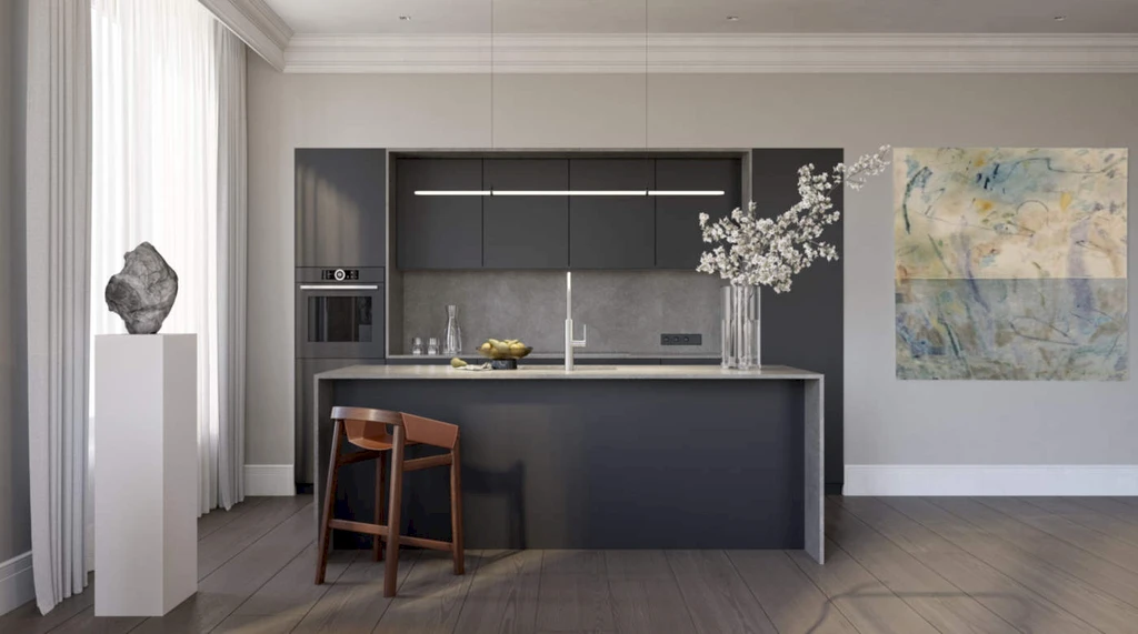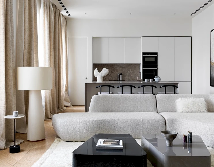 公共区域和大堂使用石材、木材及金属设计,营造高端氛围。公寓配备现代工程系统:通风与空调系统、空气和水净化系统,以及智能家居技术。该设计确保了居民的舒适性与安全性。
