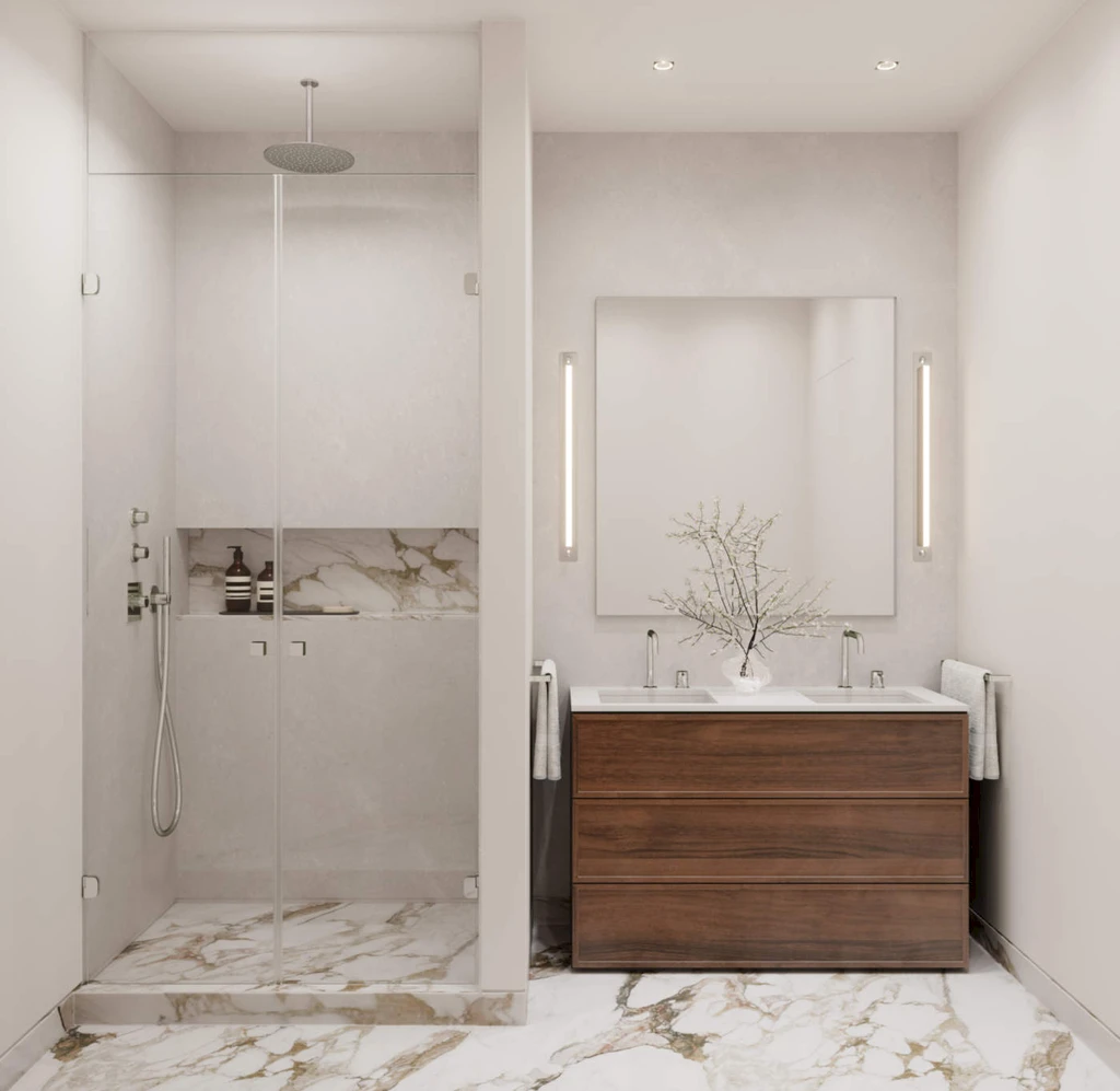 每个住宅单位均配备高端工程系统、智能集成技术、隔音及空气净化系统。室内采用优质天然材料,可根据业主偏好定制。