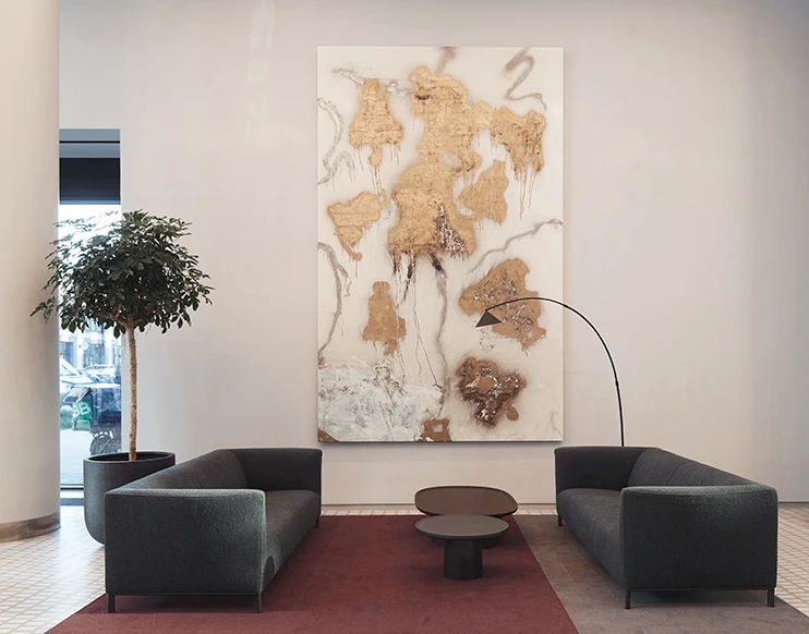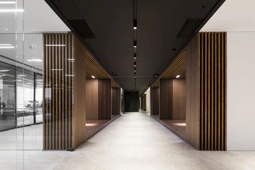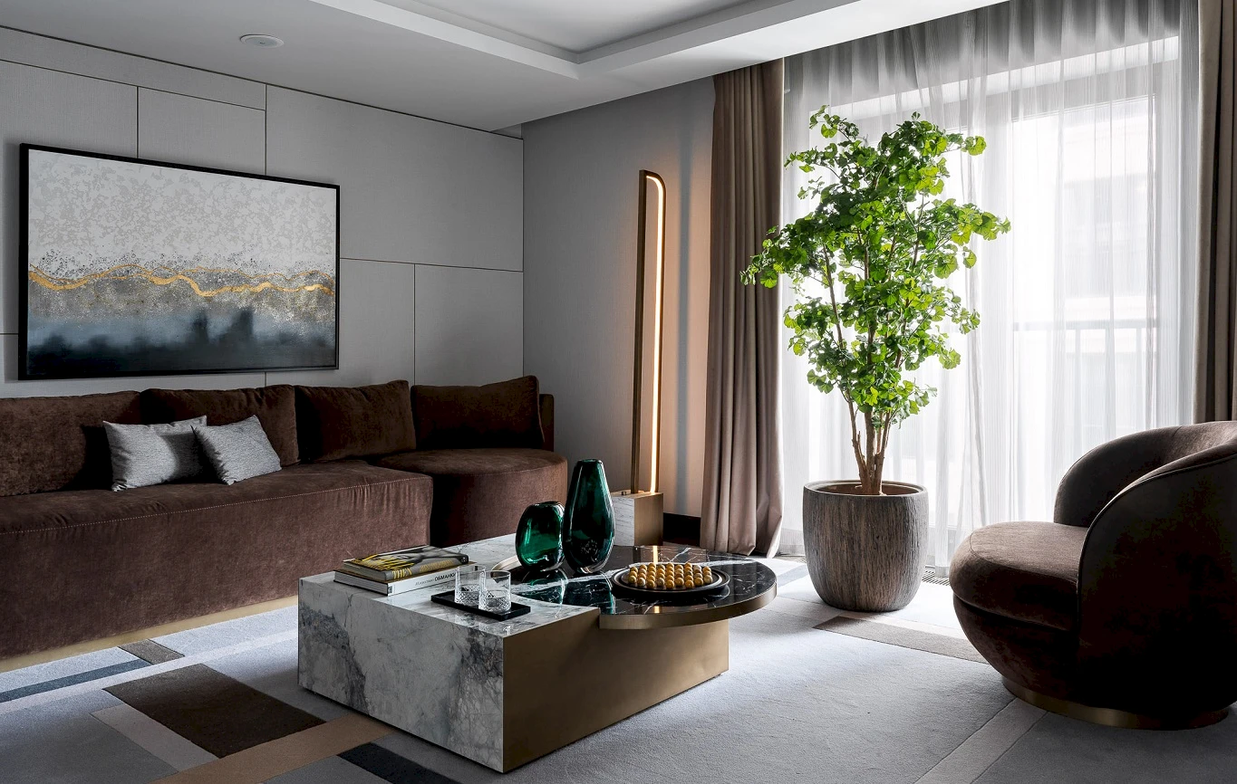 公共空间采用天然材料装饰,如石材、金属和木材。大堂设计简约现代。
