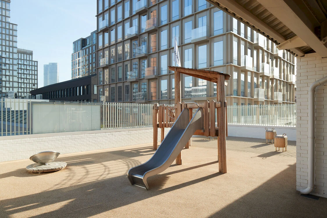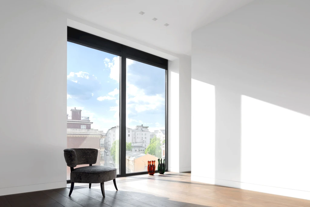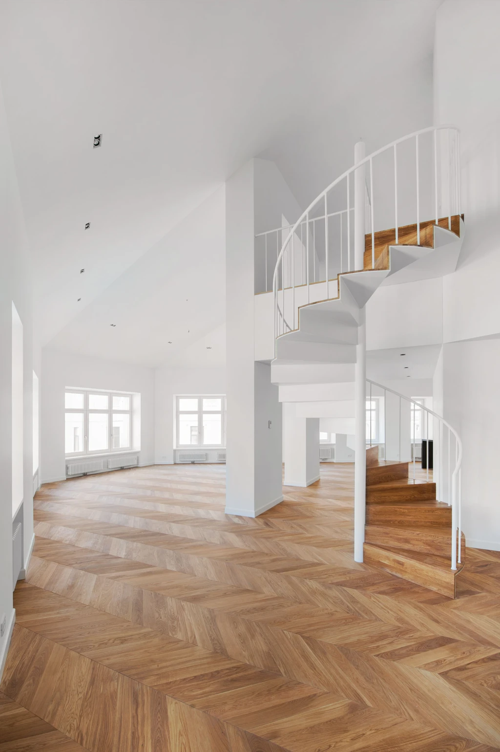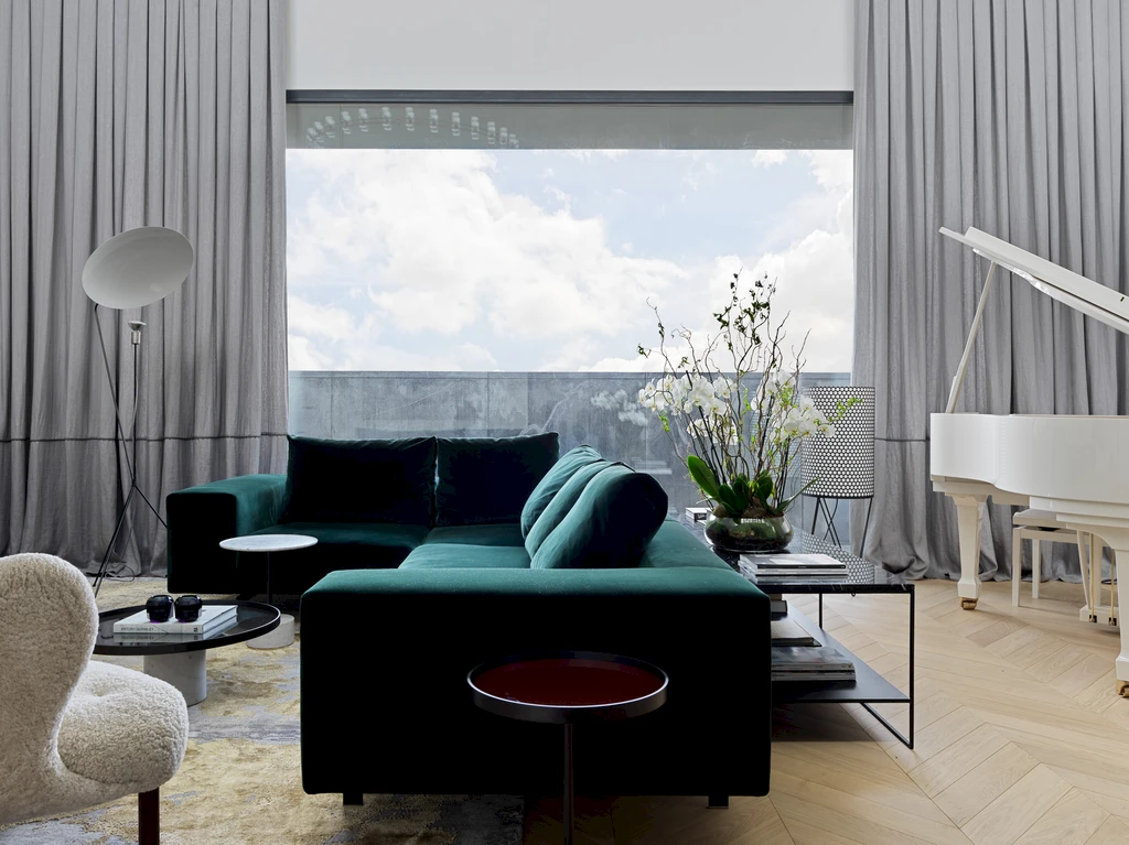 顶层为可欣赏全景景观的顶层公寓。高挑层高与大面积窗户确保充足的自然采光。