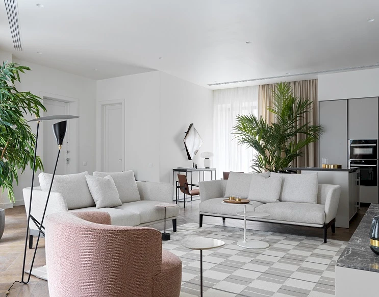 住宅部分包括 619 套公寓,均配备现代工程系统(空气和水过滤),带有精装修。公寓面积从 45 到 305 m² 不等,顶层公寓面积为 210–460 m²。室内设计与意大利工作室 Molteni Group 合作完成,保证了高品质和高端装修水平。