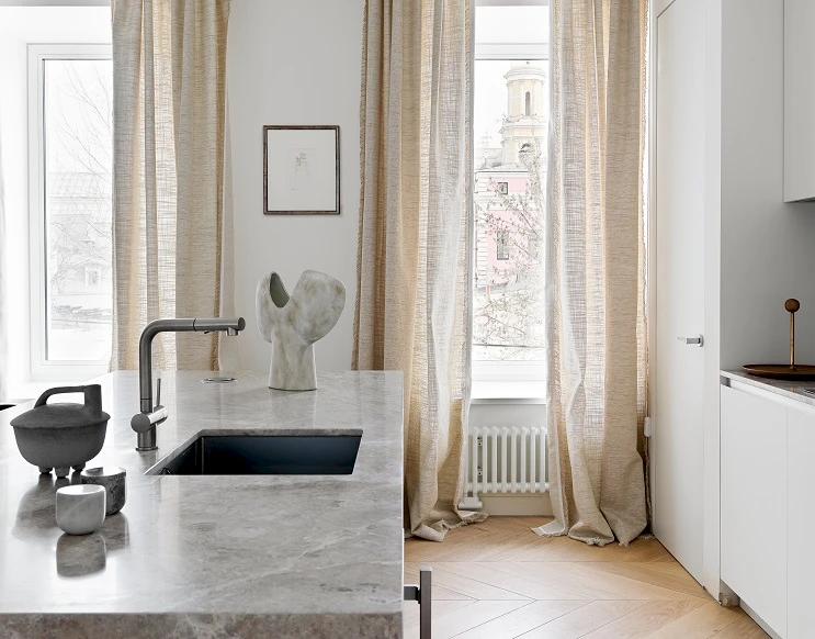 综合体包含 41 套公寓,面积从 70 ㎡ 至 422.6 ㎡,均配备精装修、厨房和浴室。部分住宅拥有高挑的天花板,增强空间感与采光。室内采用高端天然材料,完美结合历史美学与现代设计理念。
