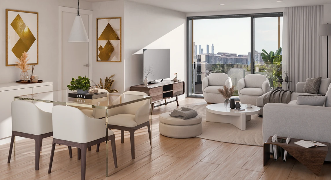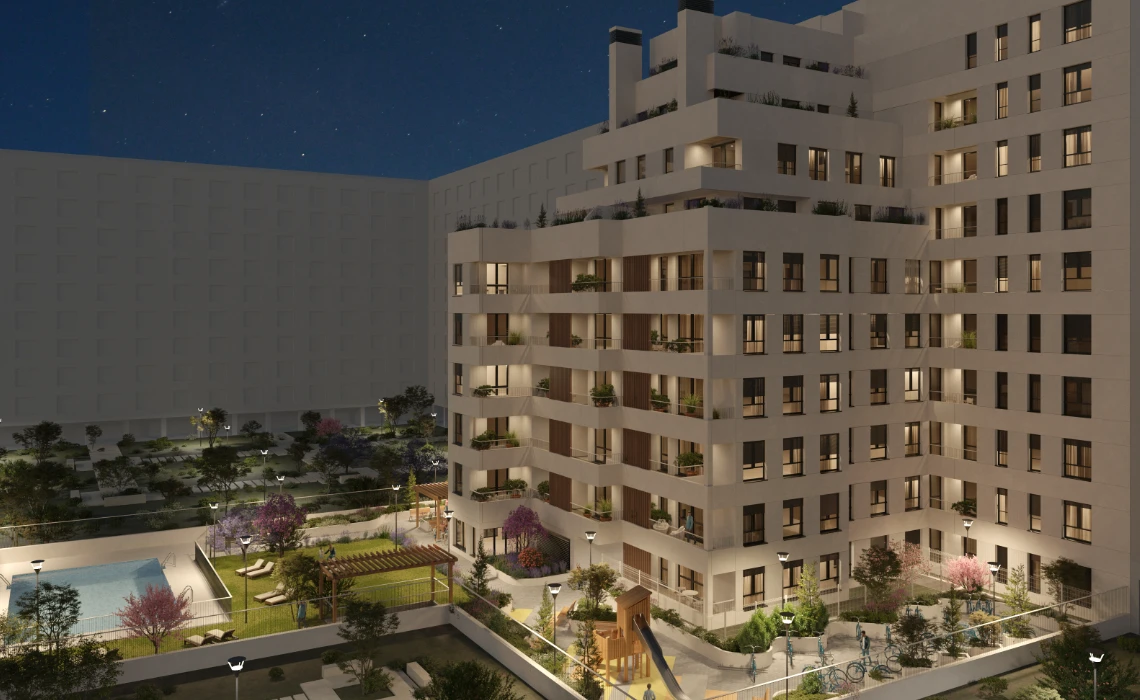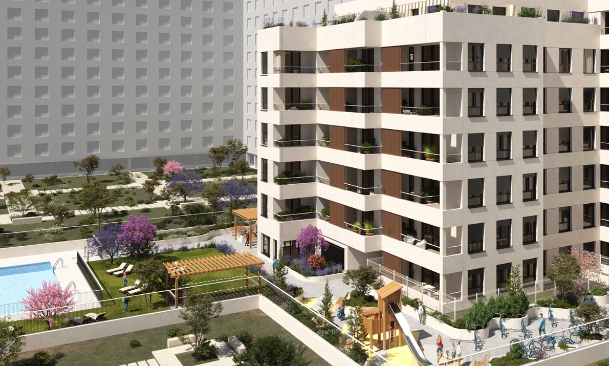 ARA住宅区 为您提供在马德里未来“城市绿肺”中拥有一套现代、明亮、节能住宅的机会——价格亲民,适合当代及未来家庭。