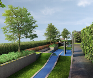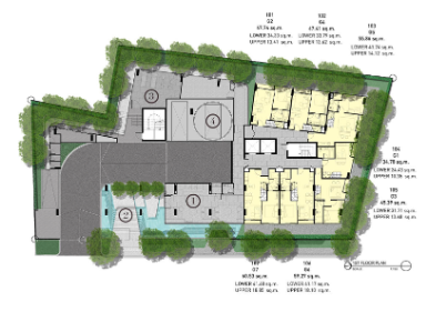 该项目由两栋8层住宅楼和两层地下空间组成,占地面积3.24公顷(32,400平方米),共提供330套全装修公寓。层高为2.4米。小区配备4部乘客电梯和70个停车位。