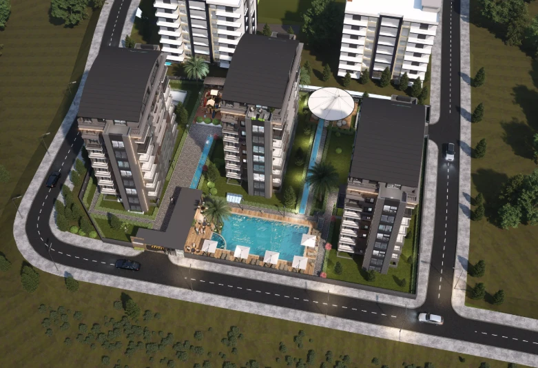 综合体位于 Döşemealtı,Yeşilbayır 区 的绿色安静区域,将郊区生活的优势与完善的城市基础设施结合。附近有商店、学校、医疗中心和交通干道,使该区域适合家庭居住和投资。