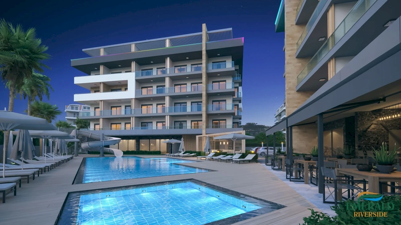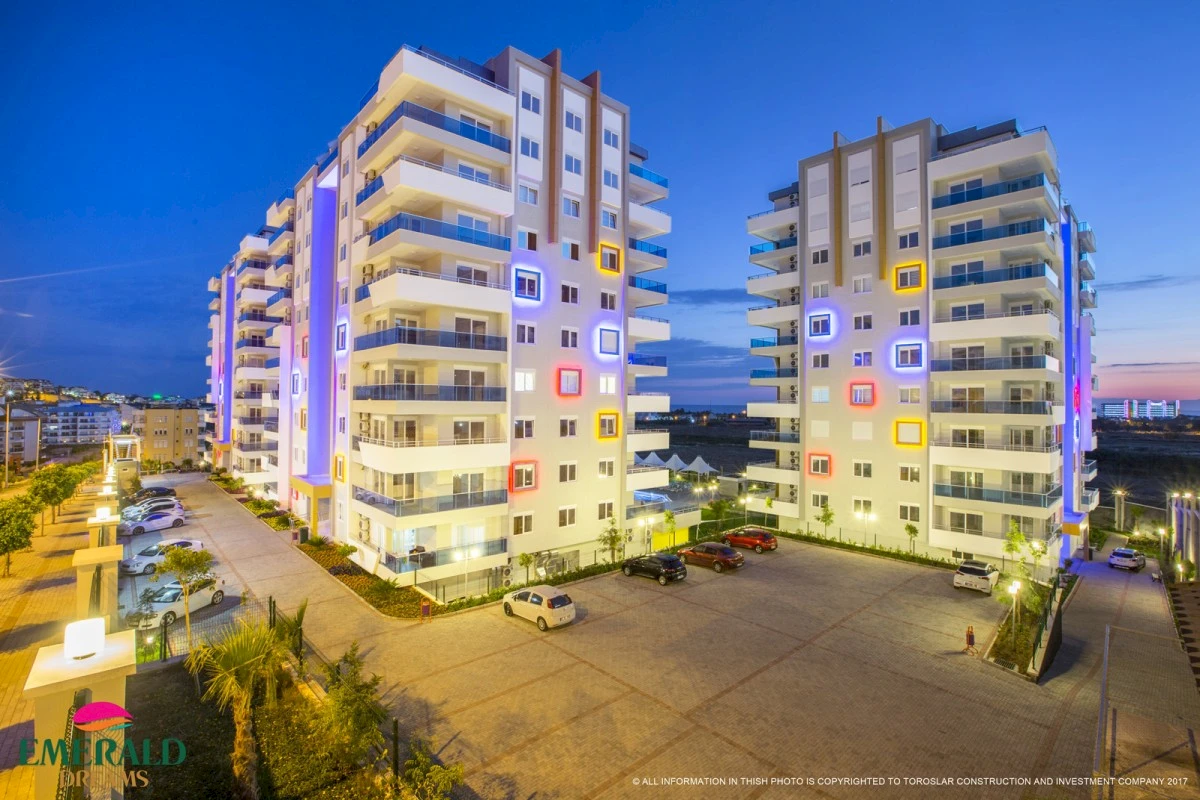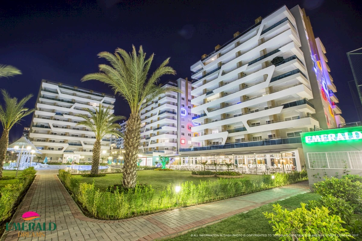 Emerald Paradise 距离海滩仅 900 米,步行约十分钟即可到达。居民可以在 Avsallar 壮丽的松树林中散步,呼吸清新而富含氧气的空气。该项目提供奢华而舒适的生活方式,让人能够放松身心,尽享宁静与安逸。