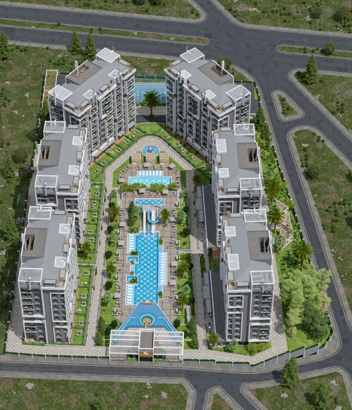 为确保住户的舒适生活与休闲体验,Horizon Park 提供丰富的室外与室内配套设施。室外区域设有大型游泳池和水滑梯、独立儿童泳池以及宽敞的日光浴区。同时还配备了有顶烧烤区和户外用餐区、儿童游乐场以及网球场。室内设施包括位于独立建筑内的恒温室内游泳池、配有台球和乒乓球的娱乐室、电视休闲区与娱乐室、儿童俱乐部以及会议厅。热爱运动的住户可使用设备齐全的健身房、普拉提和瑜伽区,同时还可在设有咖啡吧的舒适休闲区放松身心。项目内还设有豪华水疗中心,配备土耳其浴(哈曼)、桑拿、按摩浴缸、休息区及按摩室。