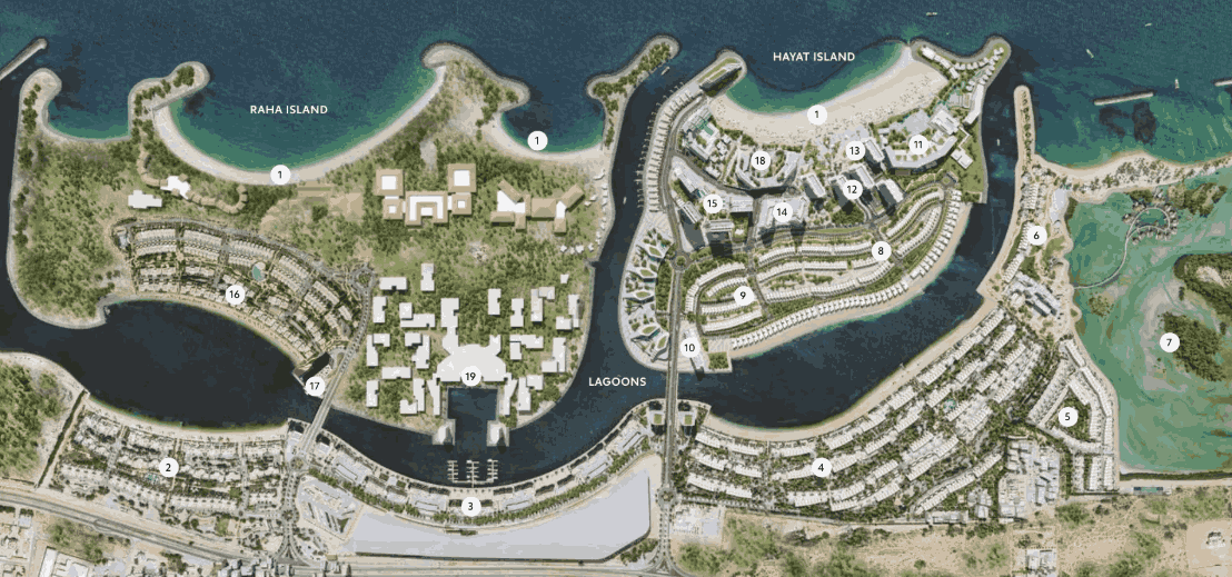该建筑群位于连接岛屿和大陆的桥梁附近,可方便享受哈亚特岛和拉斯海马的所有便利。附近是世界著名的尼基海滩度假村和水疗中心。住宅区的居民可以沿着堤岸或在天然红树林中散步。对于喜欢积极休闲娱乐的人来说,酒店大楼周围设有跑步和自行车路线。