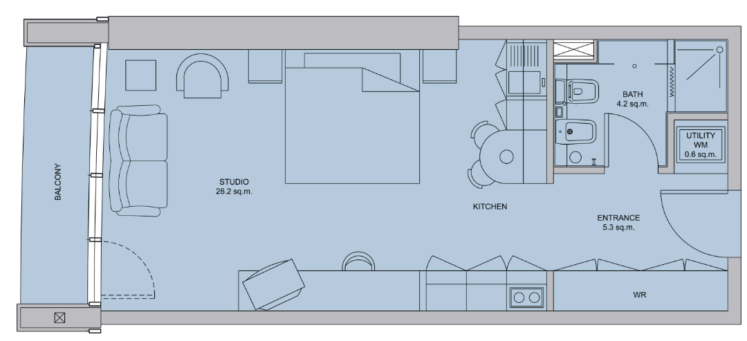 该项目提供单间公寓、一居室和两居室公寓以及豪华四居室顶层公寓。居住面积从43平方米到640平方米不等。所有公寓都配有一个或多个阳台。两室公寓还配备了衣柜。顶层公寓的业主可以使用私人泳池、化妆间、储藏室、驾驶室、电影院和办公室。