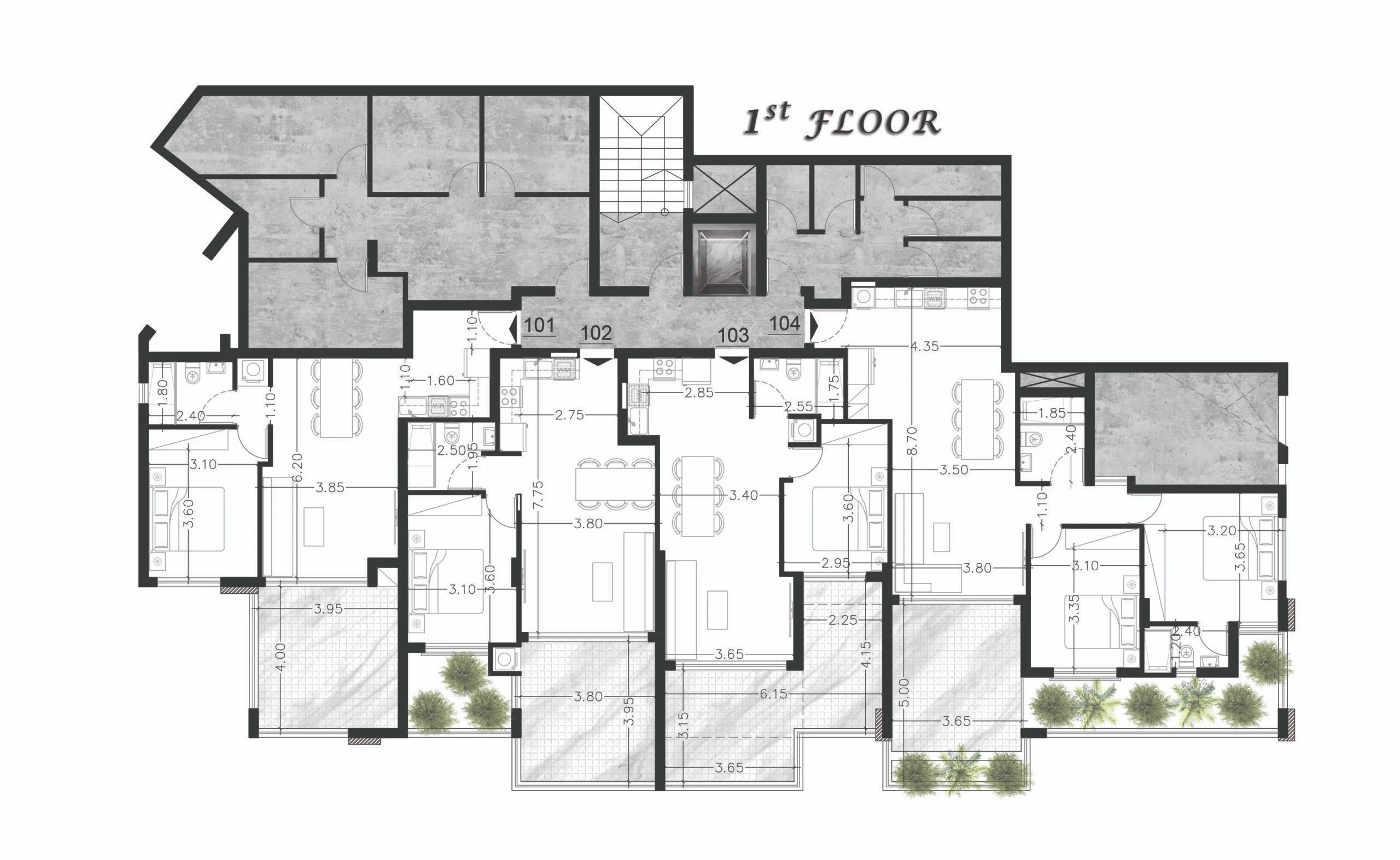 Квартиры 101, 102, 103, 201, 202, 203, 204
