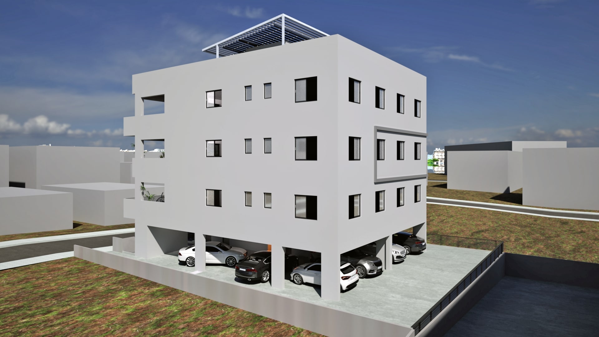 Проект расположен в тихом и благоустроенном районе Строволос — одном из самых популярных направлений Никосии. Здесь сочетаются спокойствие жилой зоны и удобный доступ к городской инфраструктуре.