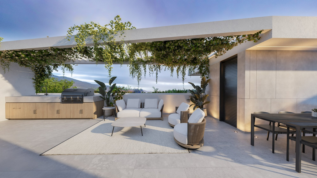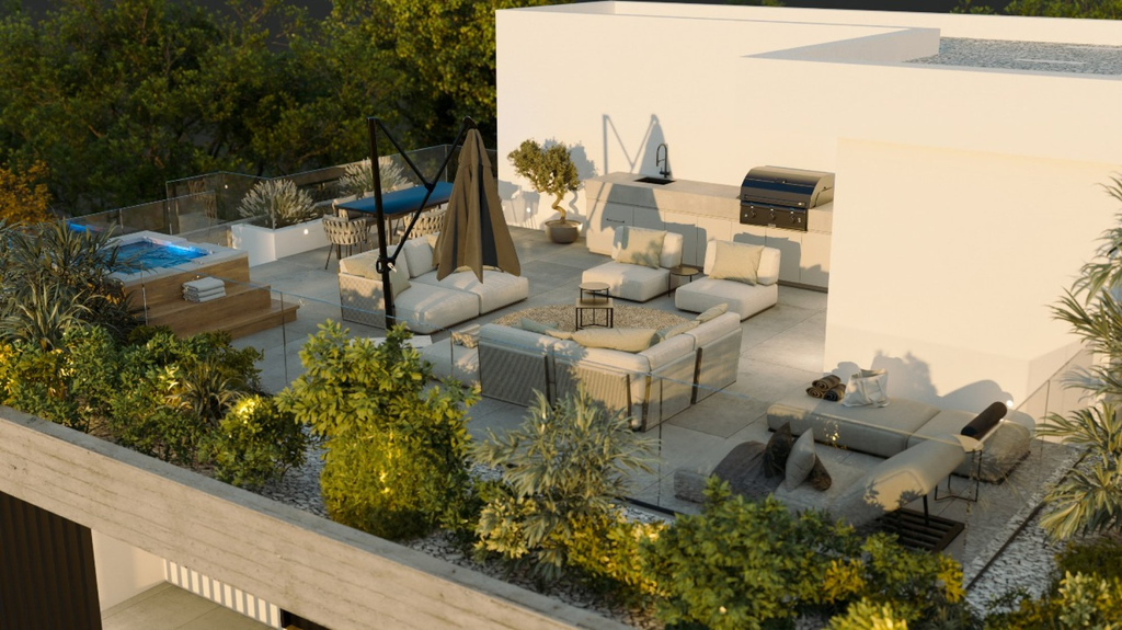 Пентхаусы занимают верхний этаж и оснащены частными террасами с джакузи, где можно наслаждаться панорамными видами на город и море.
