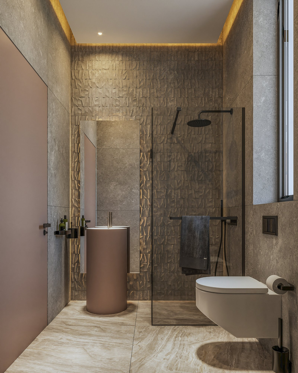 Интерьеры сочетают современный минимализм и уют: нейтральная цветовая гамма, качественные отделочные материалы и рациональная организация пространства.