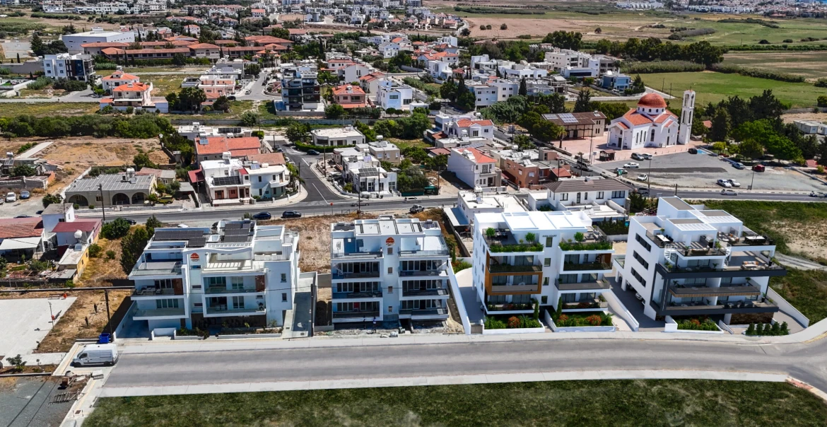 Этот изысканный жилой комплекс расположен в одном из самых перспективных пригородов Ларнаки — районе Ливадия, всего в 1,2 км от живописного морского побережья. Локация идеально сбалансирована между уединённой атмосферой и городской доступностью: до центра Ларнаки и популярной набережной Финикудес — не более 5 минут на автомобиле. Выезд на автомагистраль, соединяющую все ключевые города острова, также находится в шаговой доступности, а дорога до международного аэропорта Ларнаки занимает всего 15 минут.