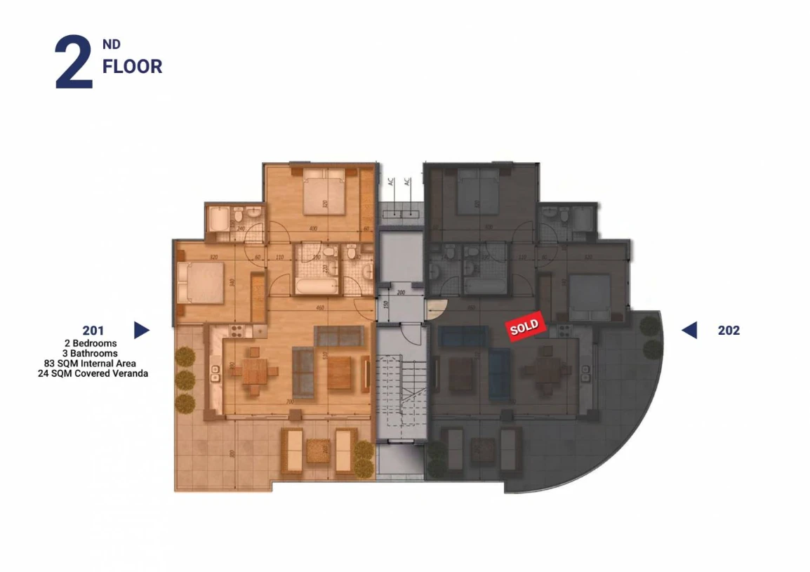 Элегантное двухэтажное здание включает тщательно спроектированные квартиры с 2 и 3 спальнями. Каждое жилое пространство ориентировано на максимальную эргономику и естественное освещение, создавая гармоничную атмосферу уюта и уединения.