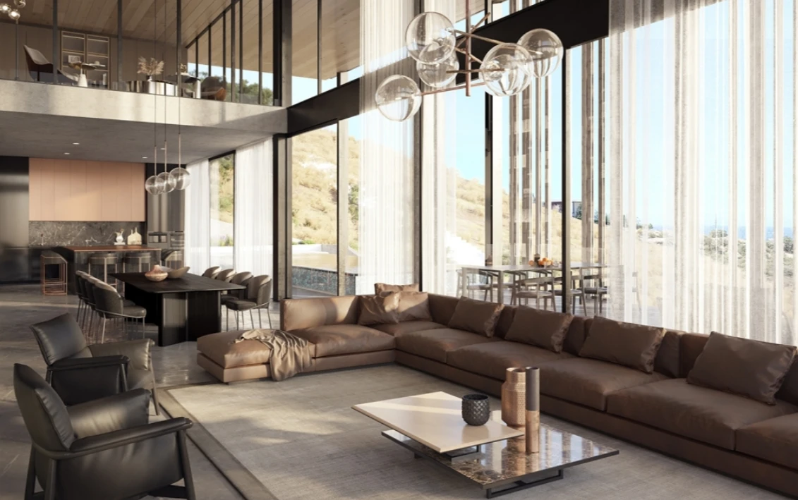 The villa boasts an impressive 1,043 m² of total covered space, including 887 m² of interior living area, set on a spacious 721 m² plot. High ceilings, panoramic windows, a thoughtfully designed layout, and a private elevator emphasize the property’s status as a top-tier residence.