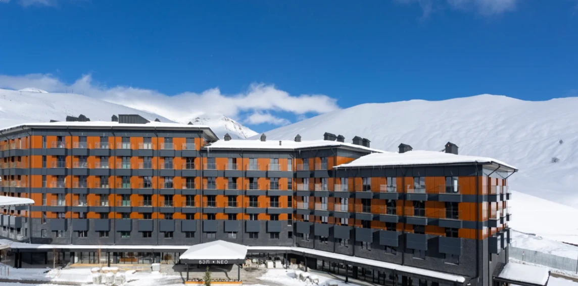 The complex already includes more than 15 buildings, among them apart-hotels with a ski-in/ski-out concept, allowing residents and guests to access ski slopes and lifts directly from their homes.
