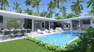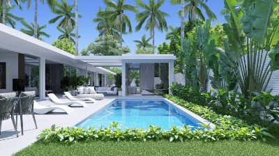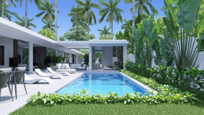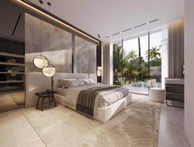 Dharma Residence offers villas with 3 or 5 bedrooms. The interior design is dominated by light tones - white and cream, as well as marble colors. The area of land plots is from 575 m² for 3-bedroom villas and from 850 m² for 5-bedroom villas. The villas are turnkey, offering exquisite luxury, contemporary design, high quality finishes and world-class amenities. Natural materials such as marble are used and furniture is handcrafted to individual designs.