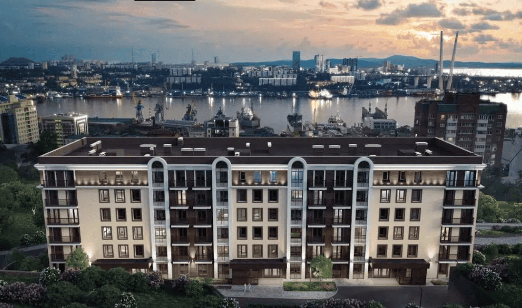 Port May is a residential complex located on Pikhovaya Street in Vladivostok, nestled in the scenic Zolotoy Rog Bay—where panoramic water views begin even from the lower floors.