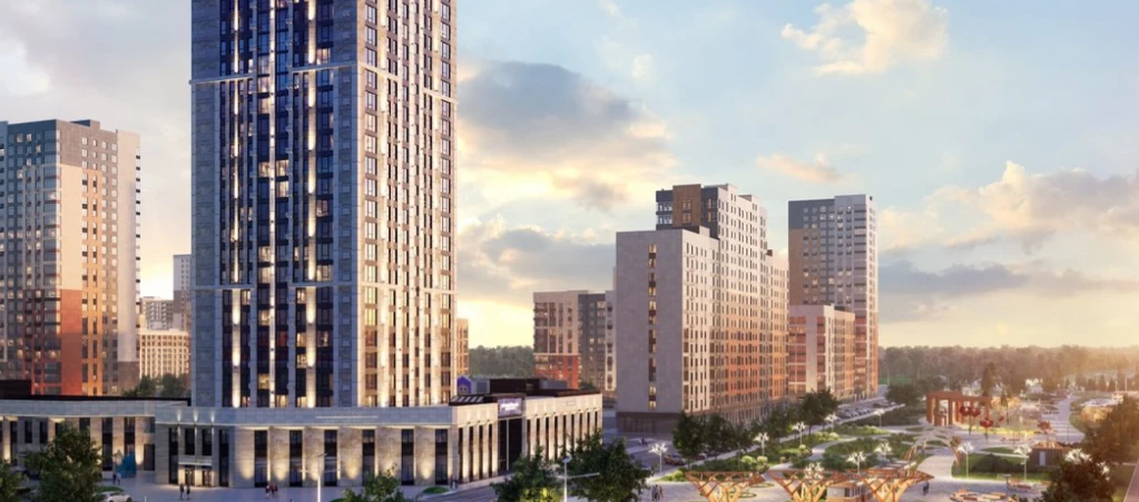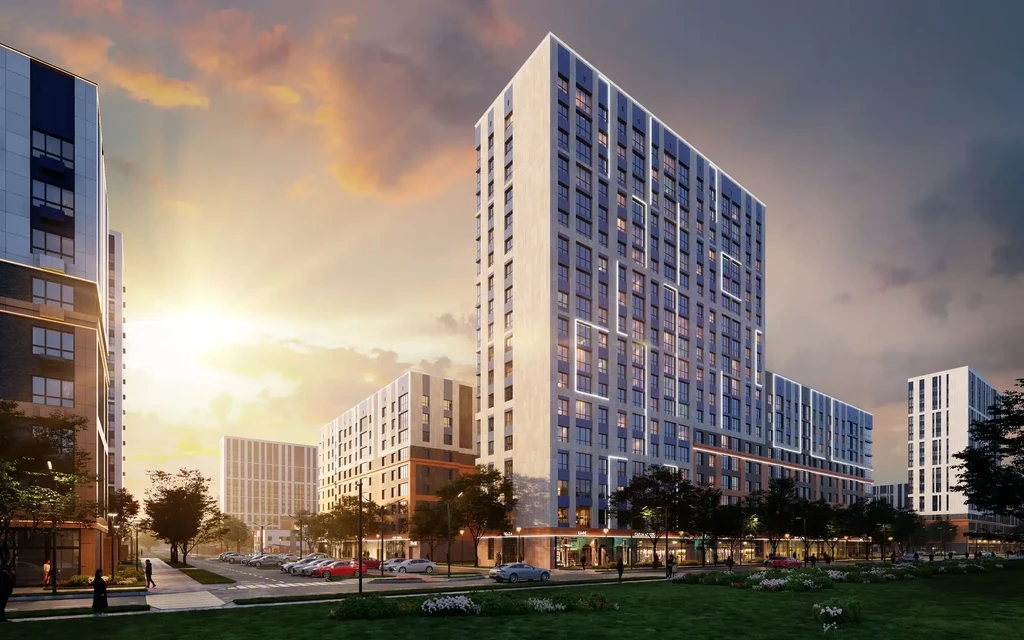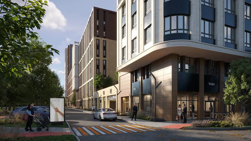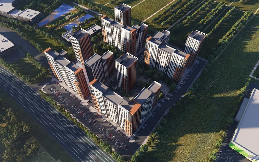 The complex offers a fully developed urban infrastructure with three kindergartens for 900 children (one already open), a school for 1,550 students, a medical center, and a shopping complex featuring the Perekrestok supermarket.
