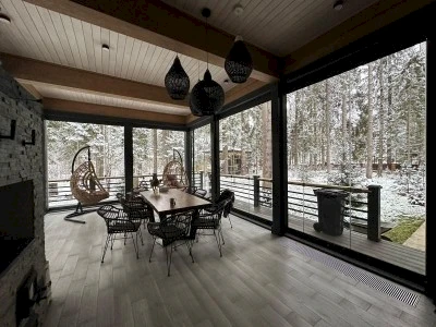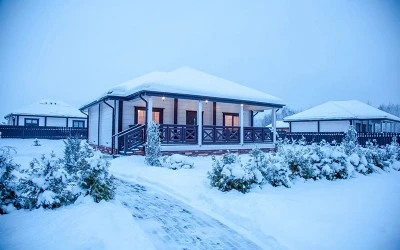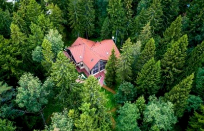 Elegant cottages with areas from 150 to 600 m² are being built on-site using high-quality, durable materials such as glued laminated timber, brick, and natural stone.
