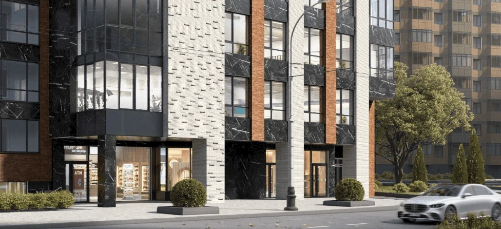 Special attention has been paid to safety and courtyard quality. Buildings №1–№16 feature car-free courtyards, with vehicle access strictly prohibited. Residents of these buildings have access to underground parking, while guest vehicles are accommodated along the outer perimeter of the block. Buildings №17 and №18 include a stylobate courtyard: ground-level terraces host children’s and sports playgrounds, with covered parking located beneath.