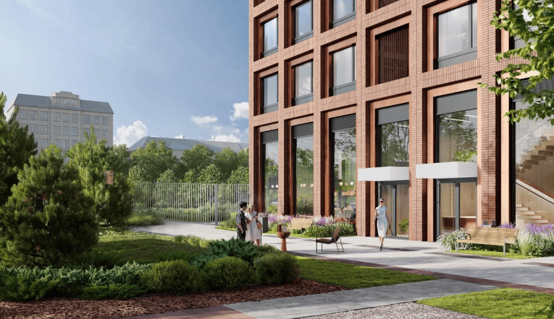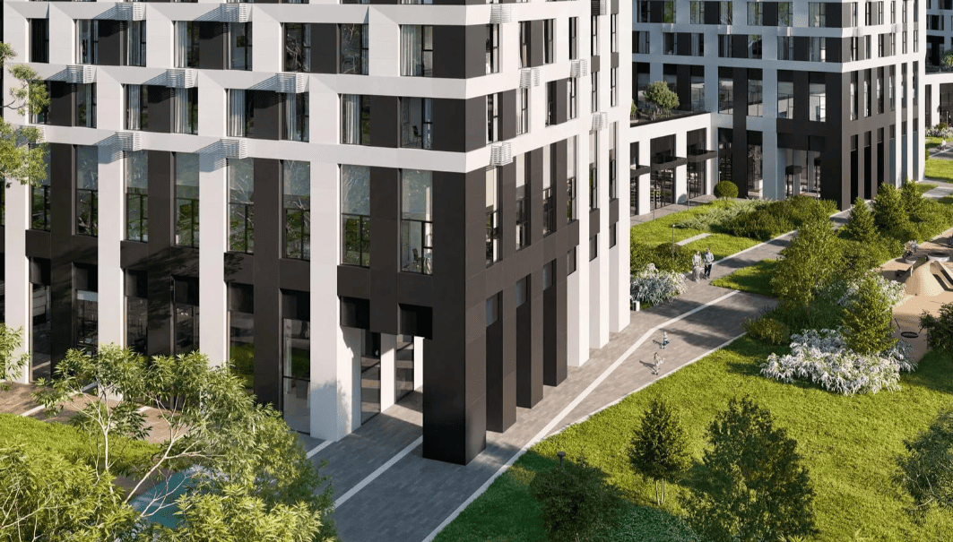 Designed in a contemporary architectural style, the complex features a secure, landscaped courtyard and its own park, creating a comfortable living environment just minutes from the city center.