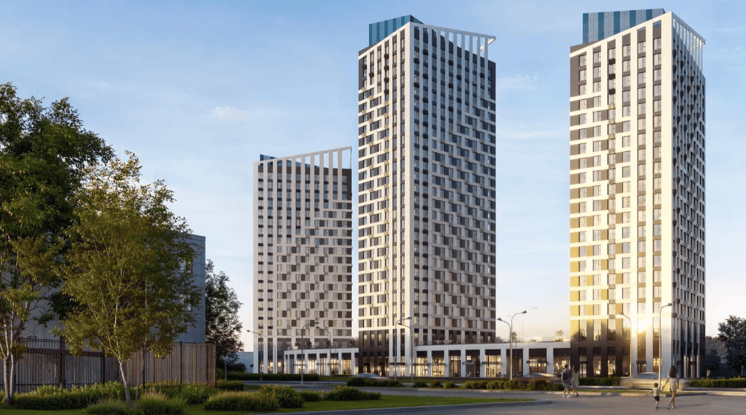 The project is being delivered in two phases and comprises five monolithic buildings ranging from 20 to 26 stories. Ceiling heights in all apartments are 3.02 meters.