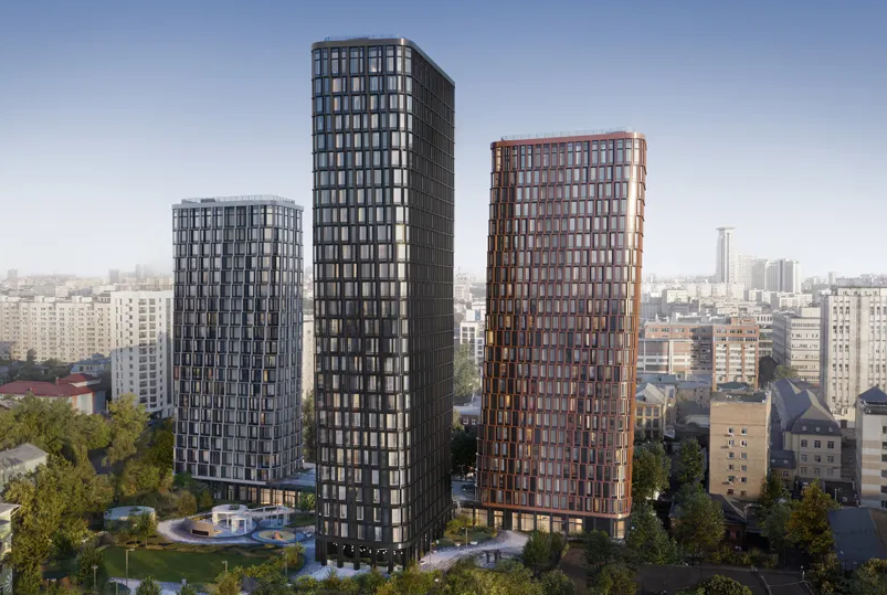Residents are welcomed by a landscaped courtyard of 5,000 m² with a play hub, workout zones, climbing wall, amphitheater, and yoga areas. On the ground floors, there are shopping galleries, cafés, and bakeries, while a school, kindergarten, and business center are located nearby. The complex offers 1,489 apartments with well-thought-out layouts, panoramic views, and ceilings up to 3.25 meters high. “Admiral” embodies modern comfort and elegant urban style.