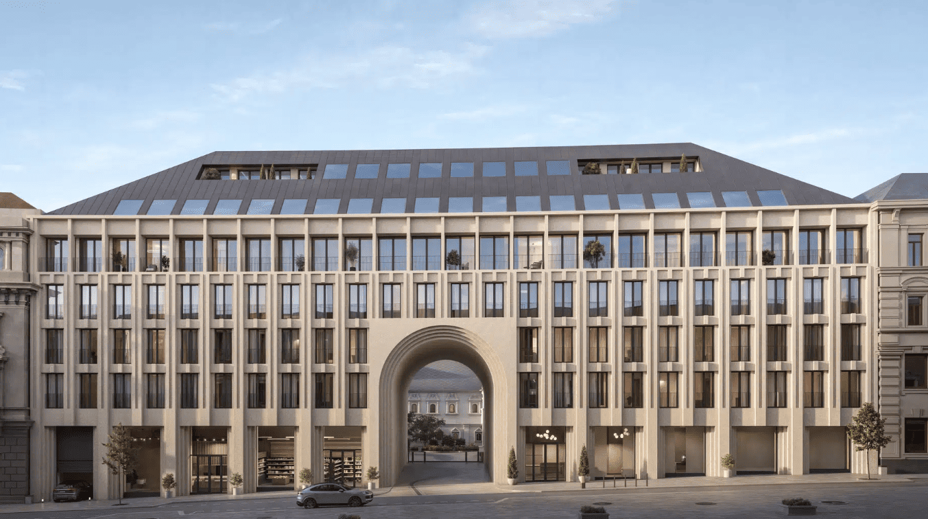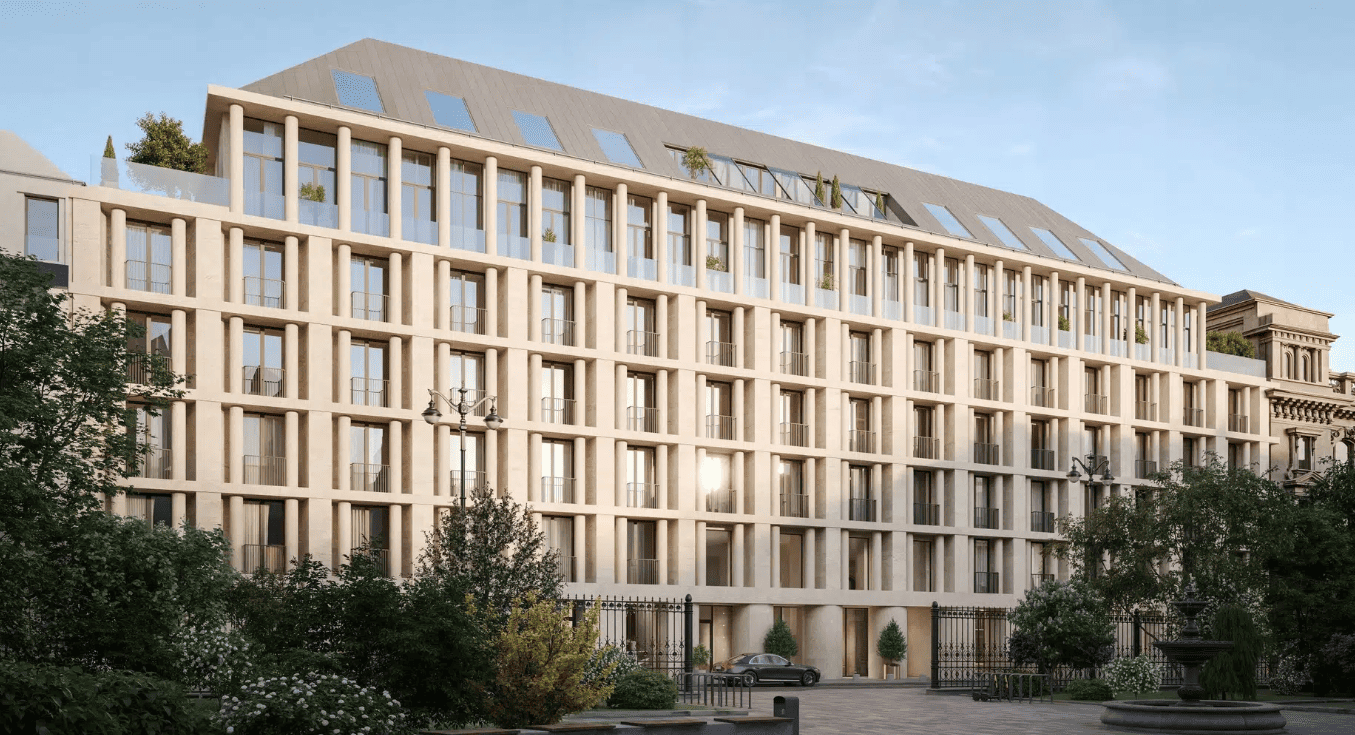 The architectural concept was created by the studio “Tsimailo Lyashenko & Partners.” The elegant façades of the mansions are designed in a neoclassical style with elements of Art Nouveau: floor-to-ceiling arched windows, columns, and rusticated stone details emphasize prestige and sophistication. The complex offers exclusive formats — penthouses with fireplaces, apartments with terraces and Kremlin views, as well as two- and three-story townhouses with private entrances.