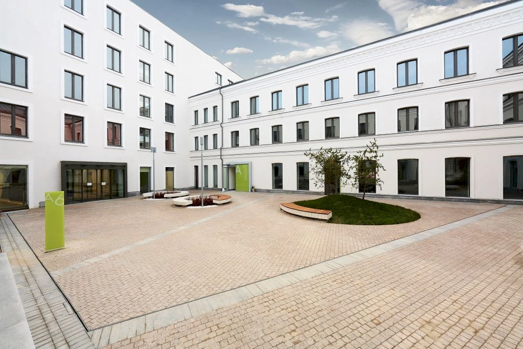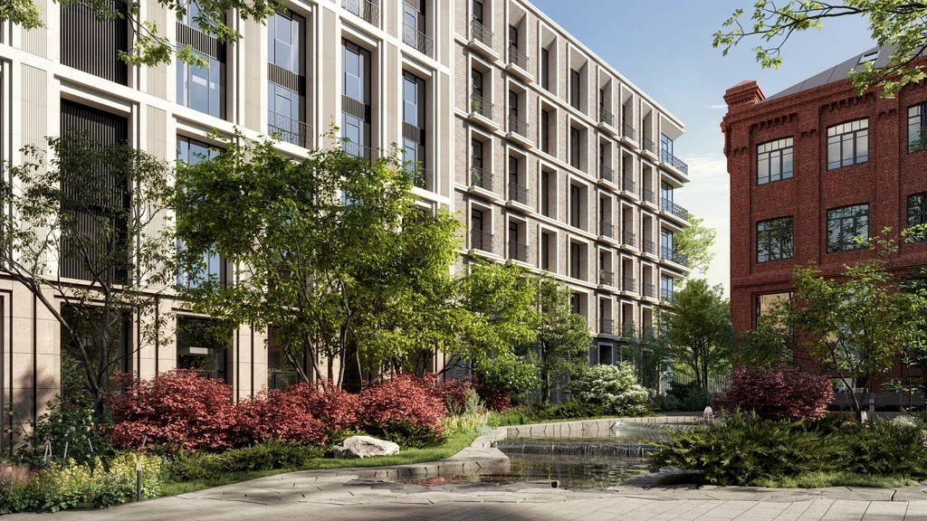 The project includes a restored historic building from 1915, featuring elements of Art Nouveau and Neoclassicism, complemented by modern construction solutions. The facades are preserved in their original form — brickwork, arched windows, and decorative elements. Inside, panoramic windows, high ceilings, and spacious layouts provide privacy and exclusivity for every residence.
