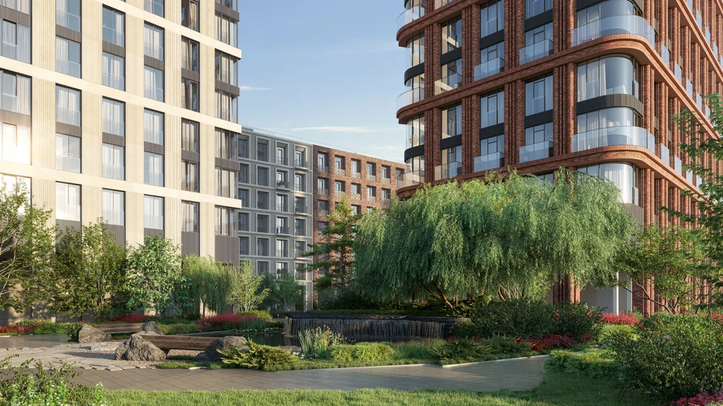 The heart of the quarter is a private courtyard-park of about 1.8 hectares, fully landscaped for residents: