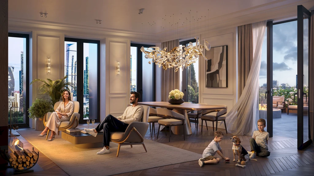 A distinctive feature of the project is the panoramic views of Moscow’s iconic landmarks, including the Kremlin, the Cathedral of Christ the Saviour, and the architectural ensembles of the central districts.