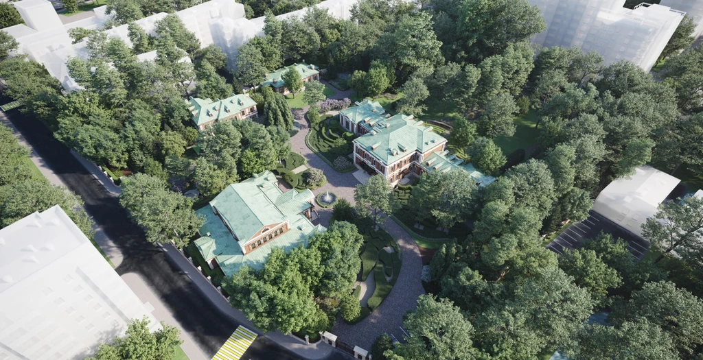 The Gorodskaya usadba project represents a rare format of elite real estate in the center of Moscow — a restored architectural ensemble of a 19th-century historic estate adapted for modern living. The complex unites several mansions forming a closed and private territory where historical heritage, architectural elegance, and modern standards of comfort are harmoniously combined. The main idea of the project is to preserve the atmosphere of a classical Moscow estate while creating a unique high-end residential environment.