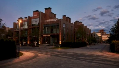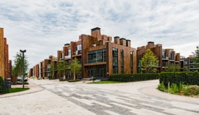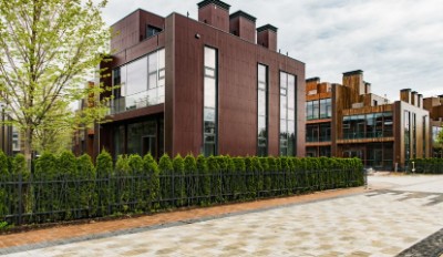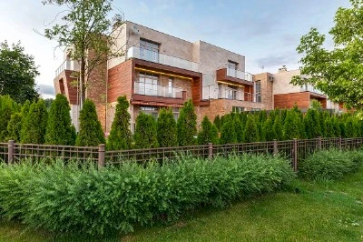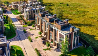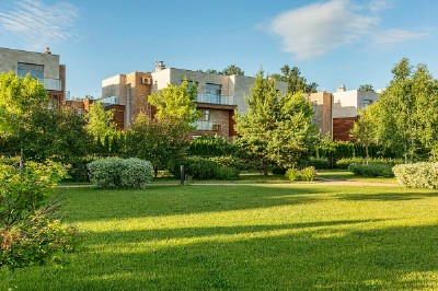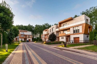 The community features minimalist cottages and townhouses in Scandinavian and high-tech styles, ranging from 200 to 400 m². Homes use energy-efficient technologies and natural materials, with panoramic windows and thoughtfully planned layouts across various districts.