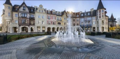 Deauville draws stylistic inspiration from the Norman and palatial motifs of late 19th to early 20th-century France. The village features 99 custom-designed villas up to 2,150 m² and 64 townhouses up to 450 m². All homes are built according to exclusive architectural designs and decorated with ornamental tiles, wrought iron details, frescoes, and copper roofing—evoking the spirit of historic European resorts.